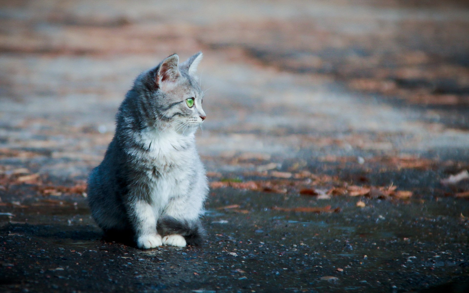 The cat is waiting for the owner on the street