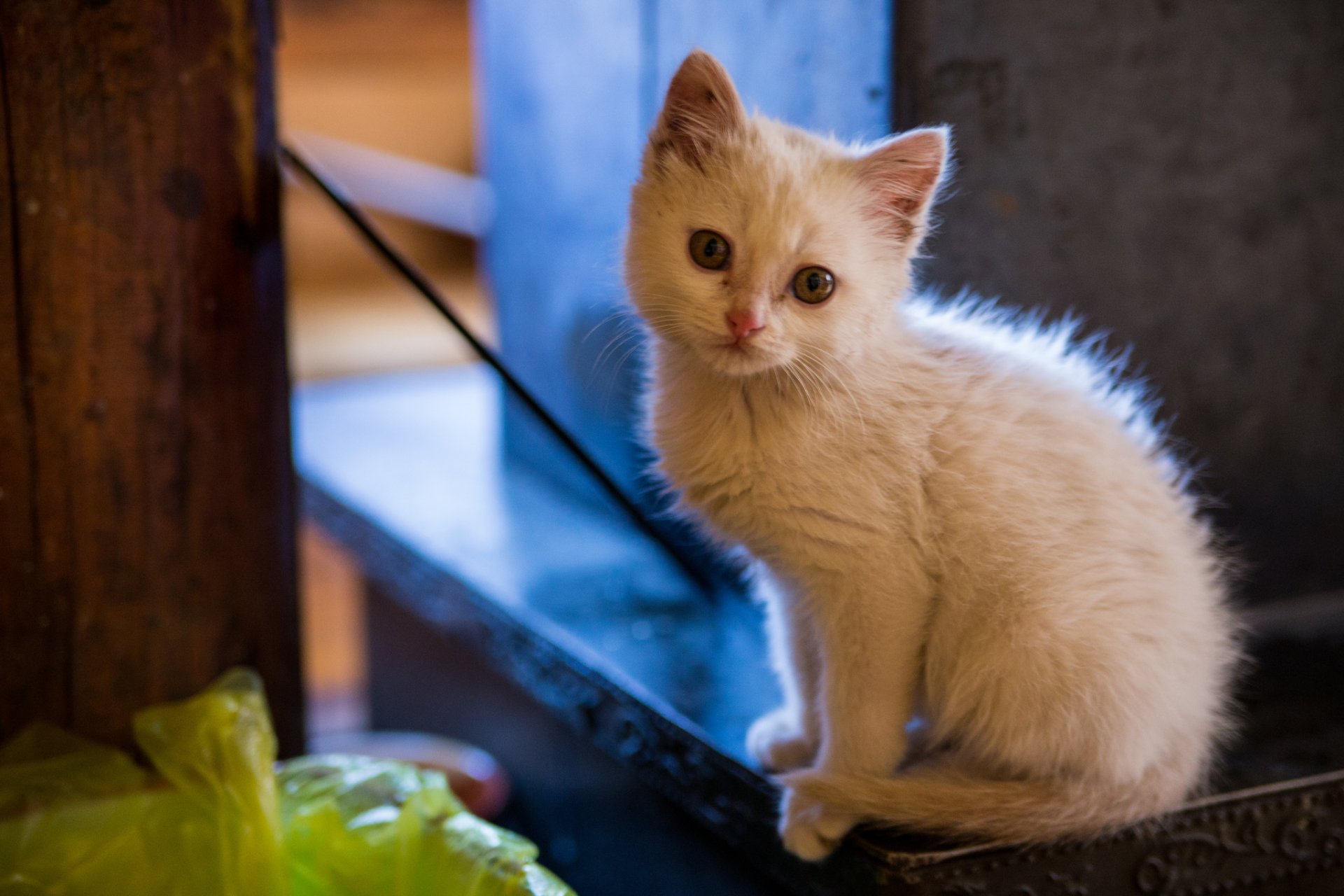 Sad look of a white kitten