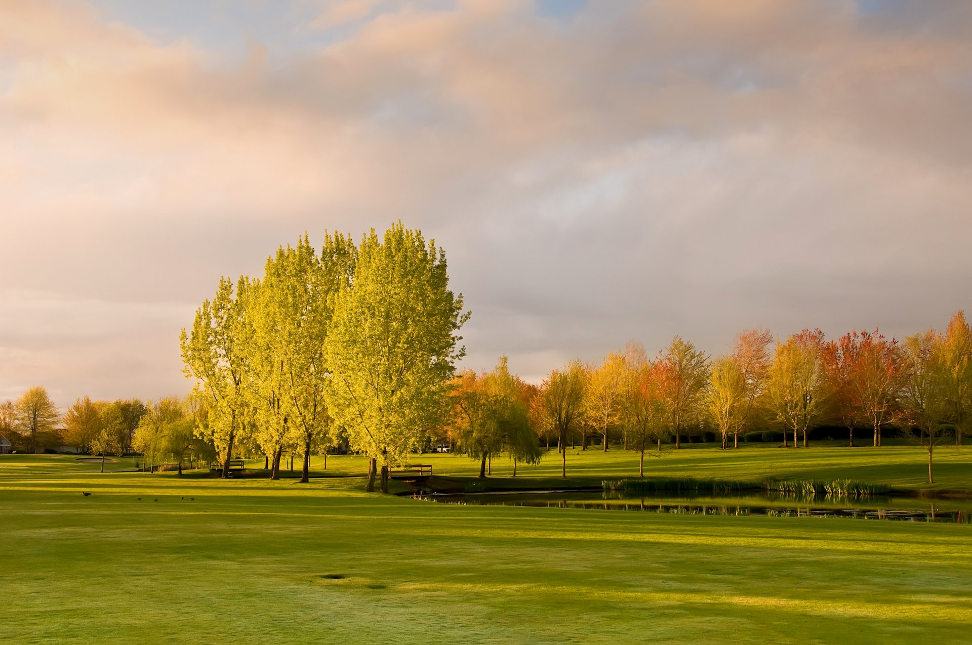 There are a lot of trees in the forest in the park and sometimes there is a pond