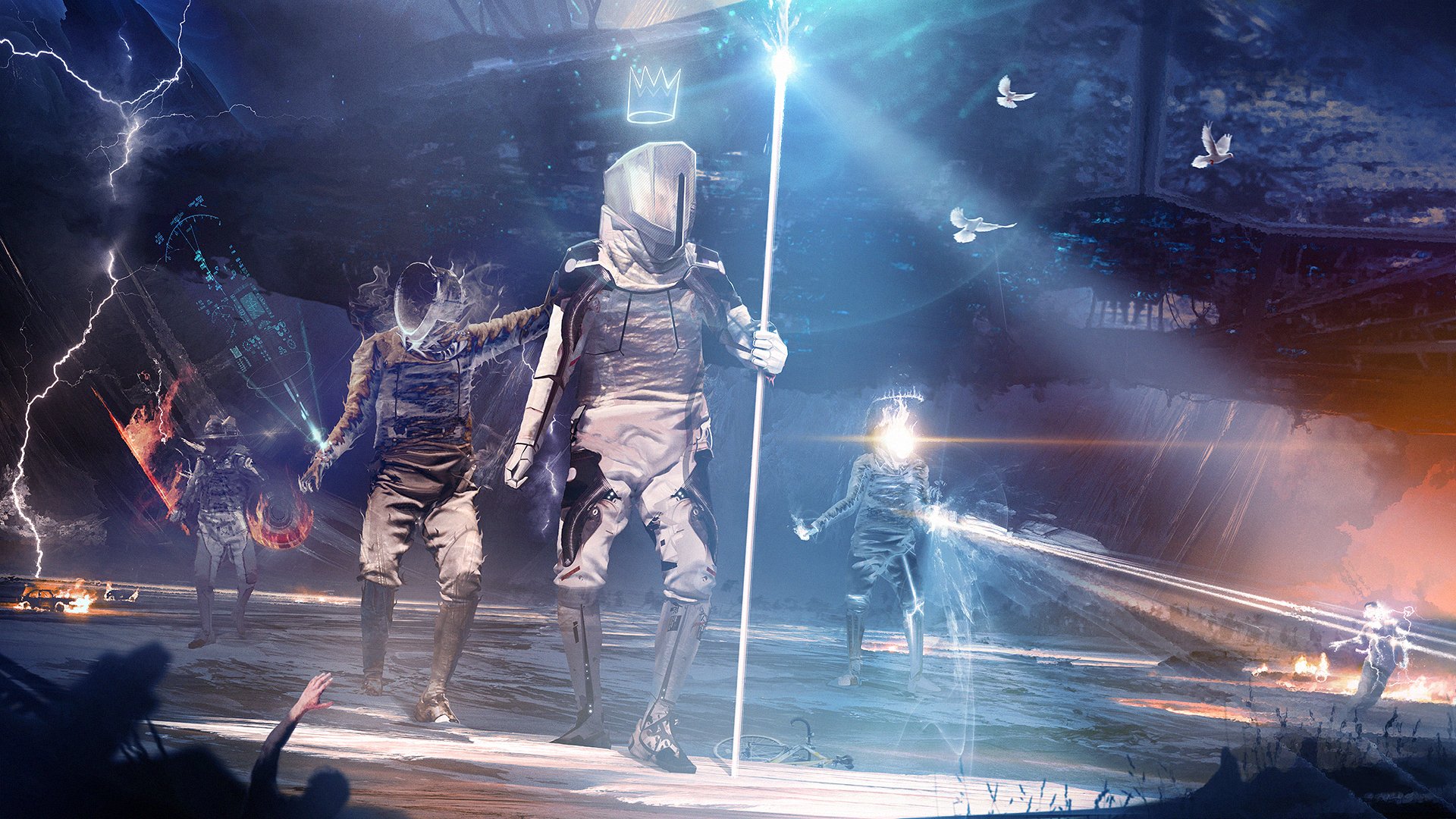 An angel looks at heaven and prays to God