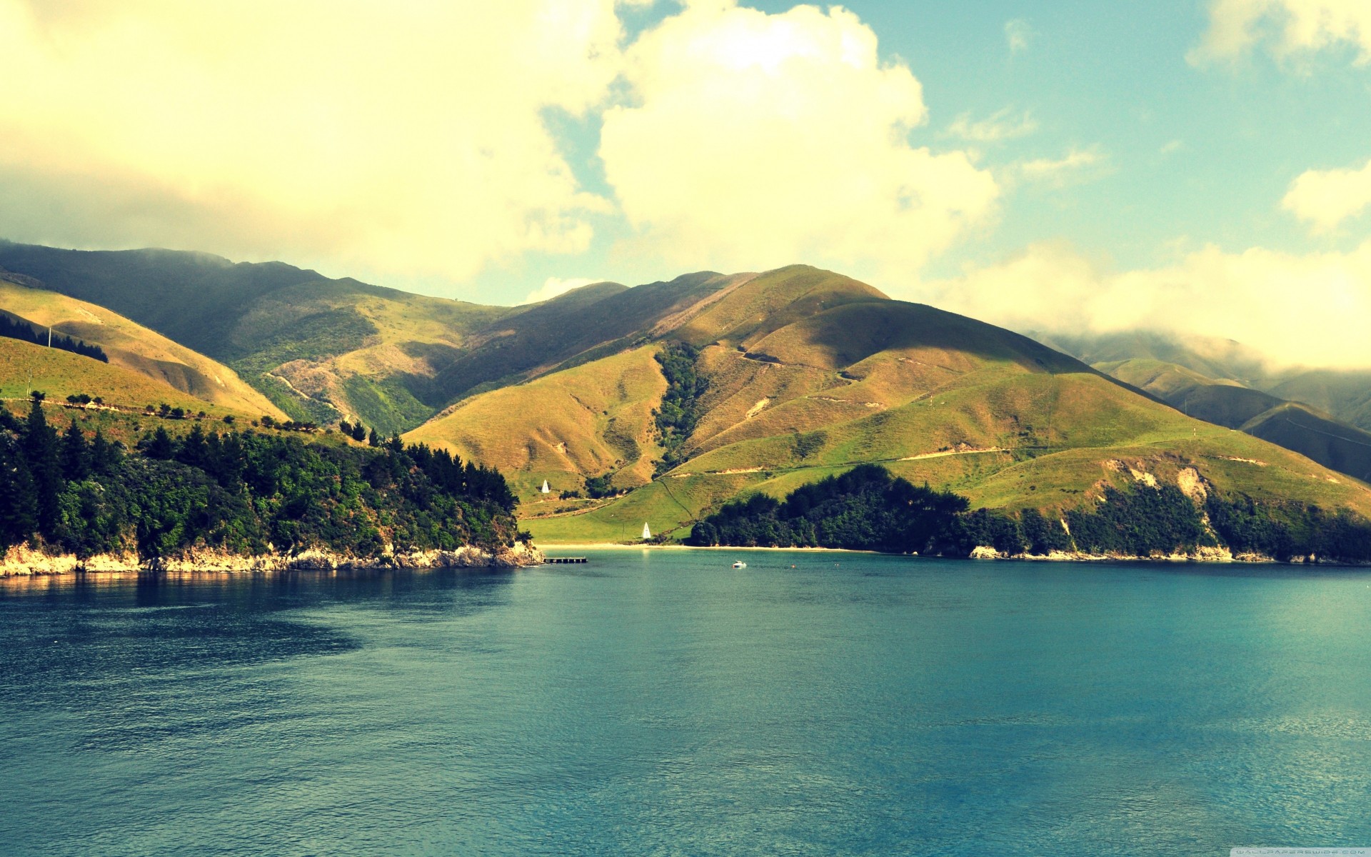 A lake among mountains and forests