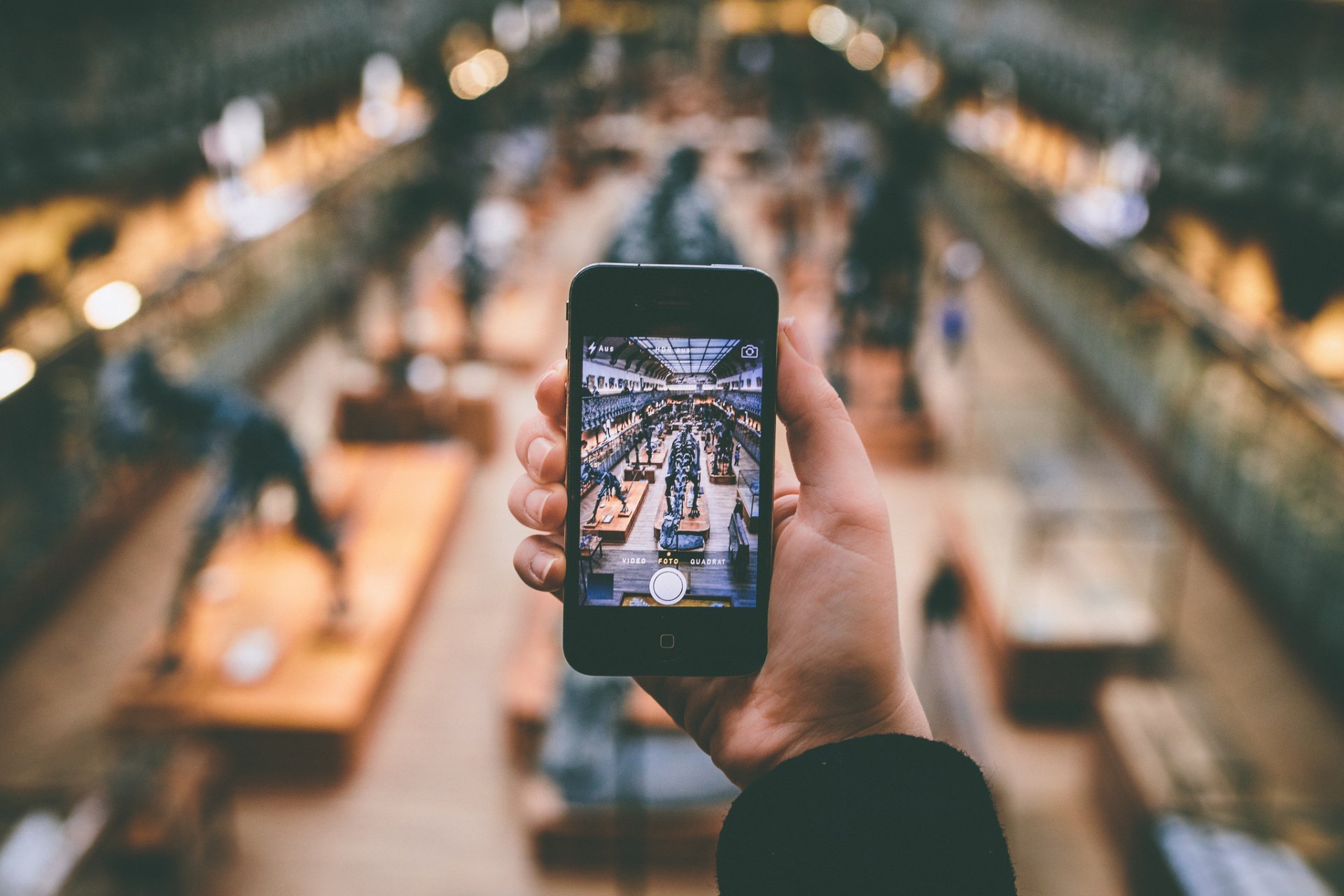 Stylized image of the sky, mountains and flowers with a skeleton in the foreground