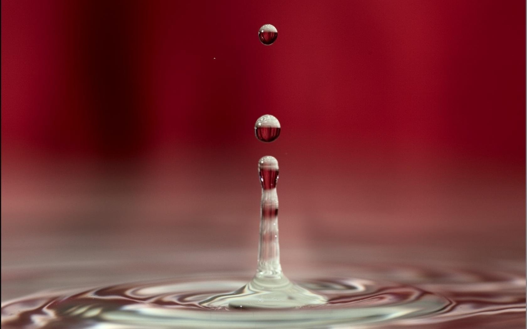 A sexy brunette girl in a swimsuit and a light blouse is sitting in the water against a background of stones