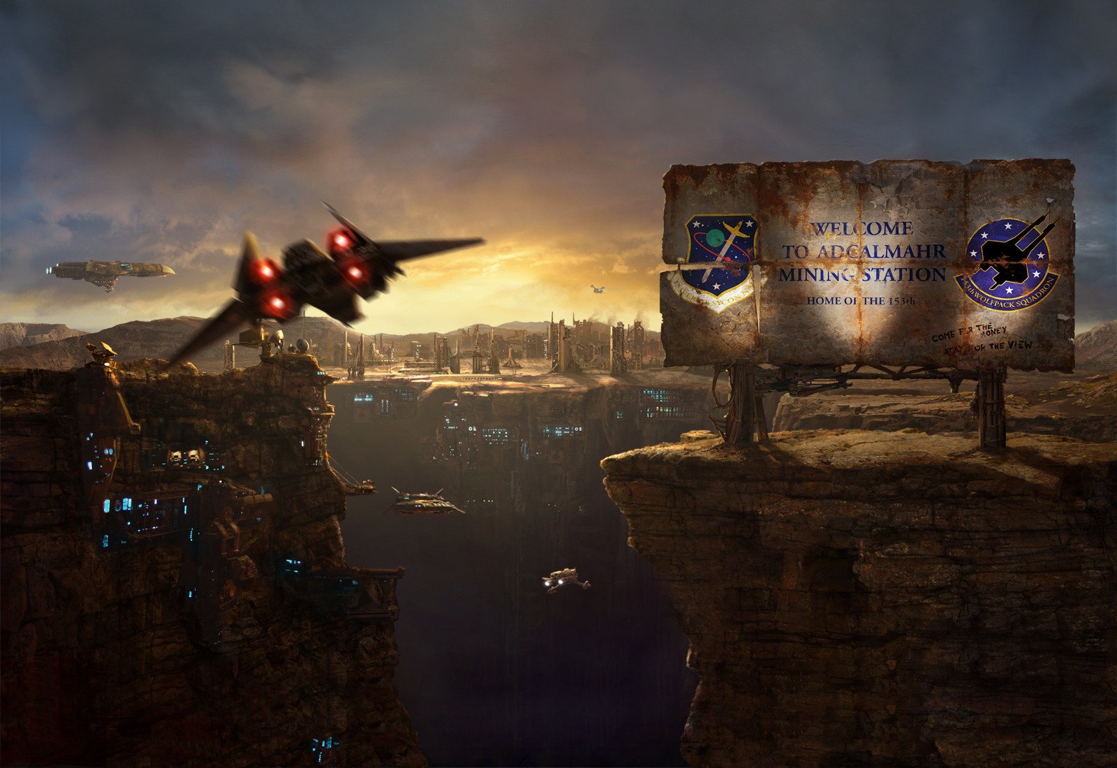 Spaceships fly over the canyon