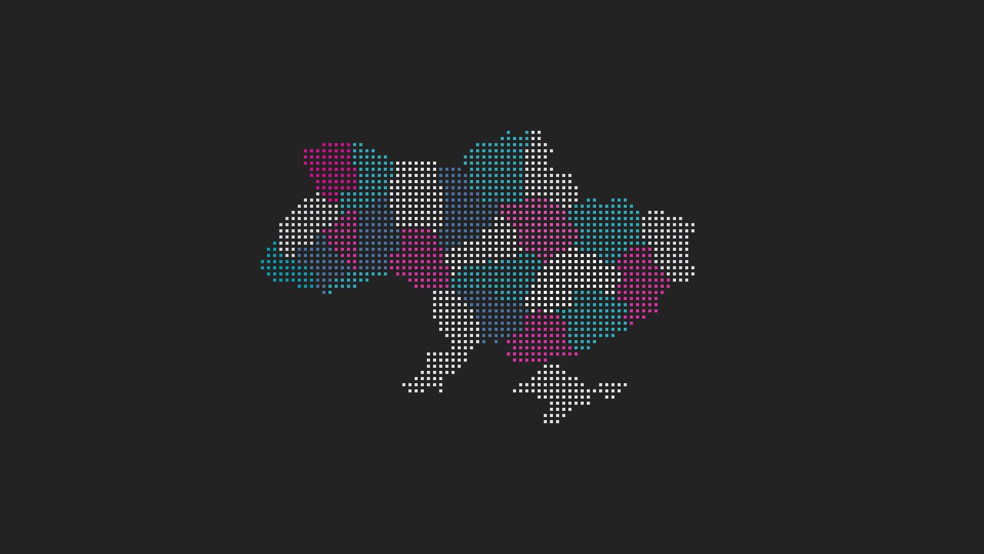 A map of Ukraine made of many small cubes on a black background