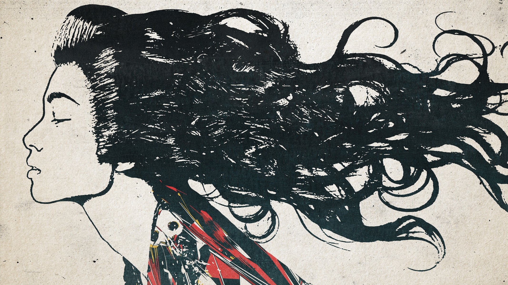 Stylish girl in flight with cranes (origami)
