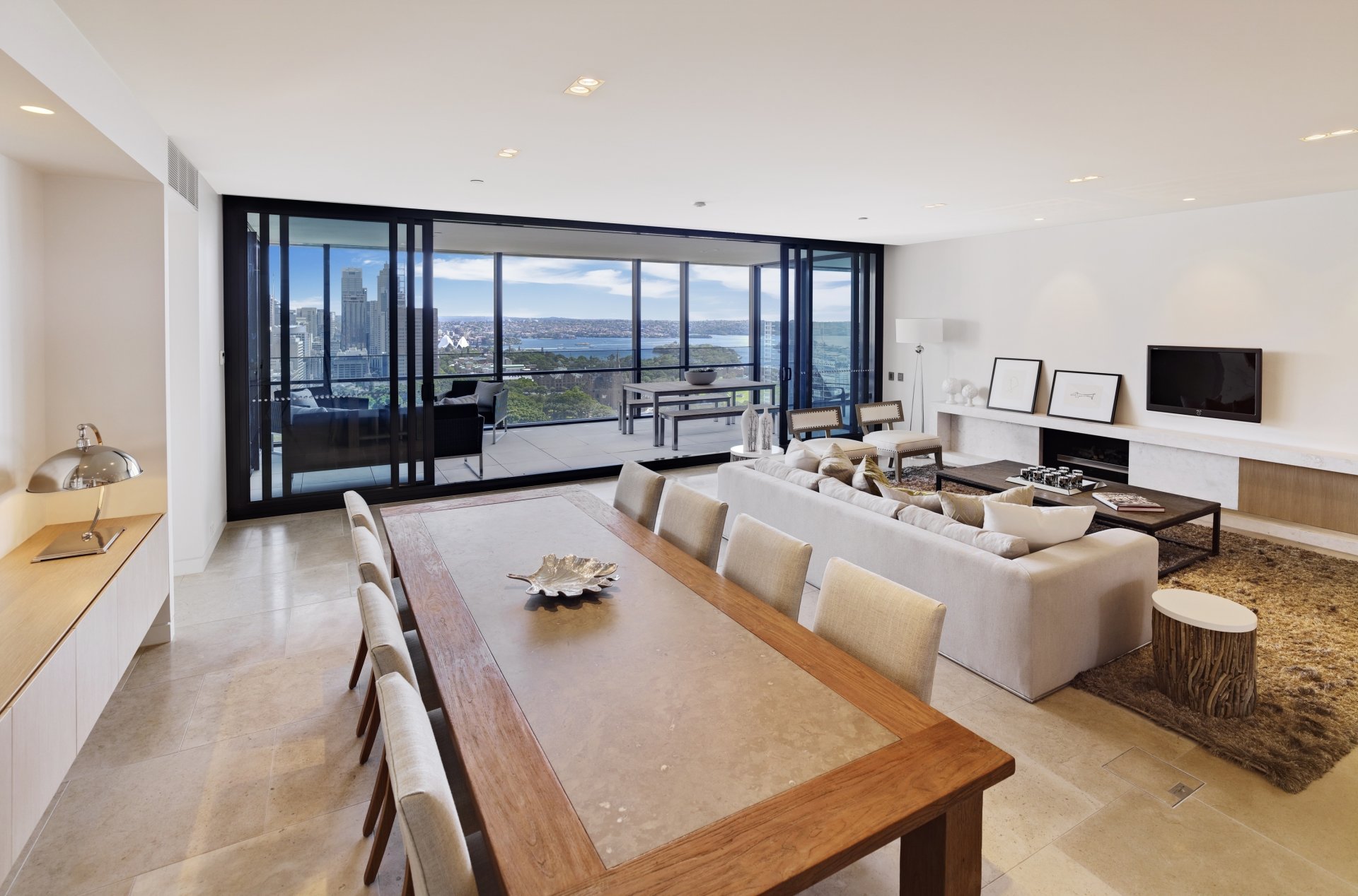 Apartment with table and sofa