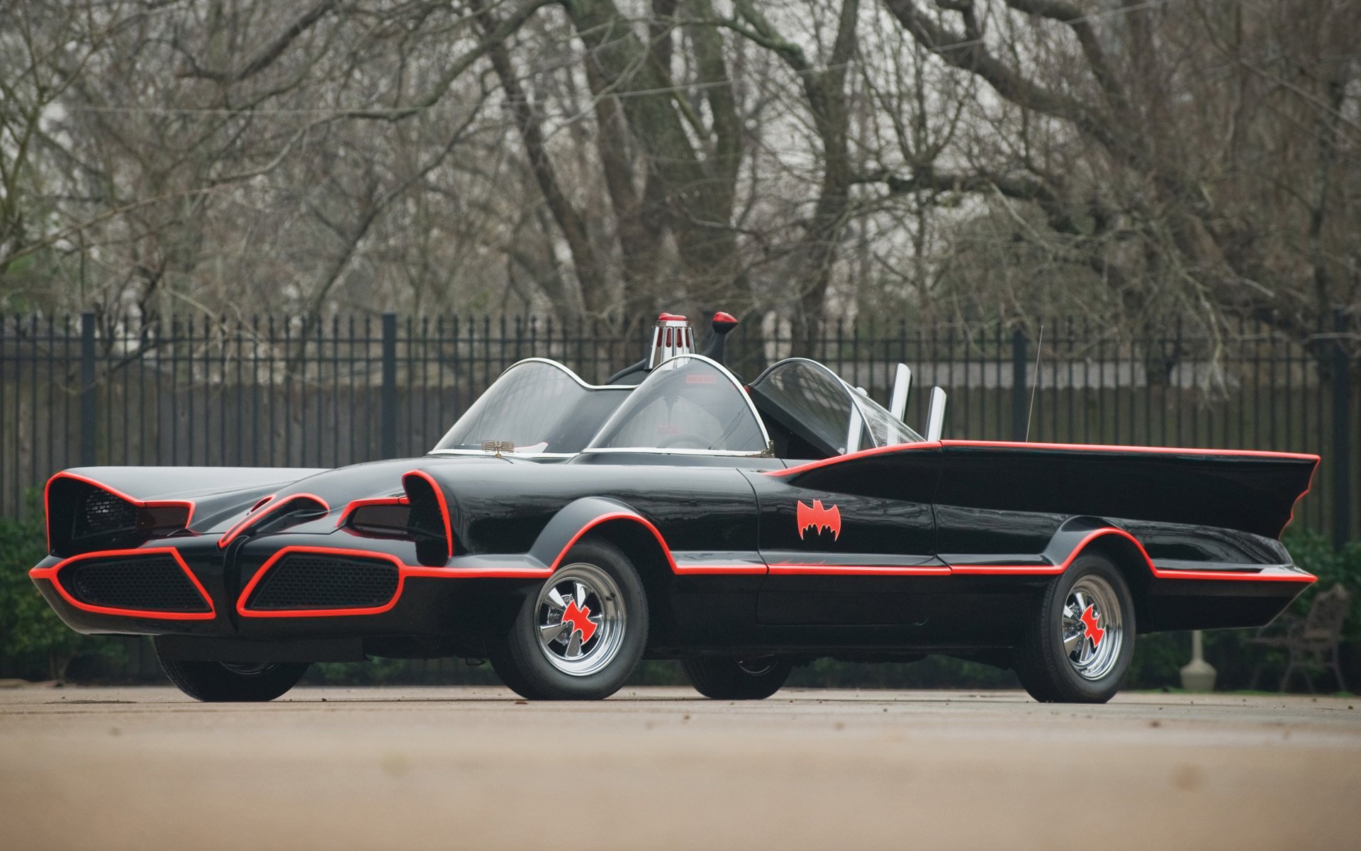 Batmobile in the city during the day at the park in autumn