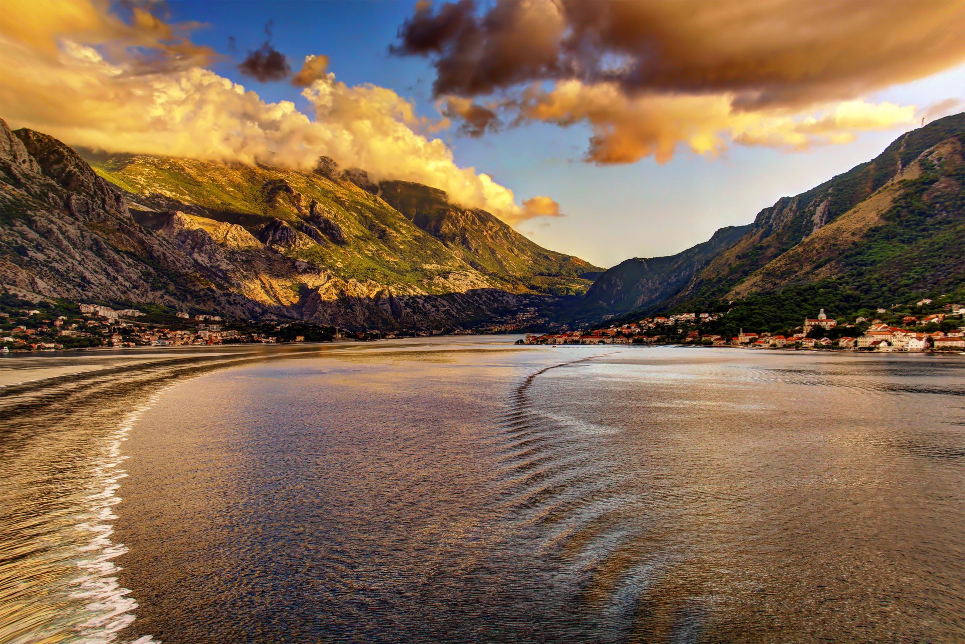 The town is drowning in the evening sunset