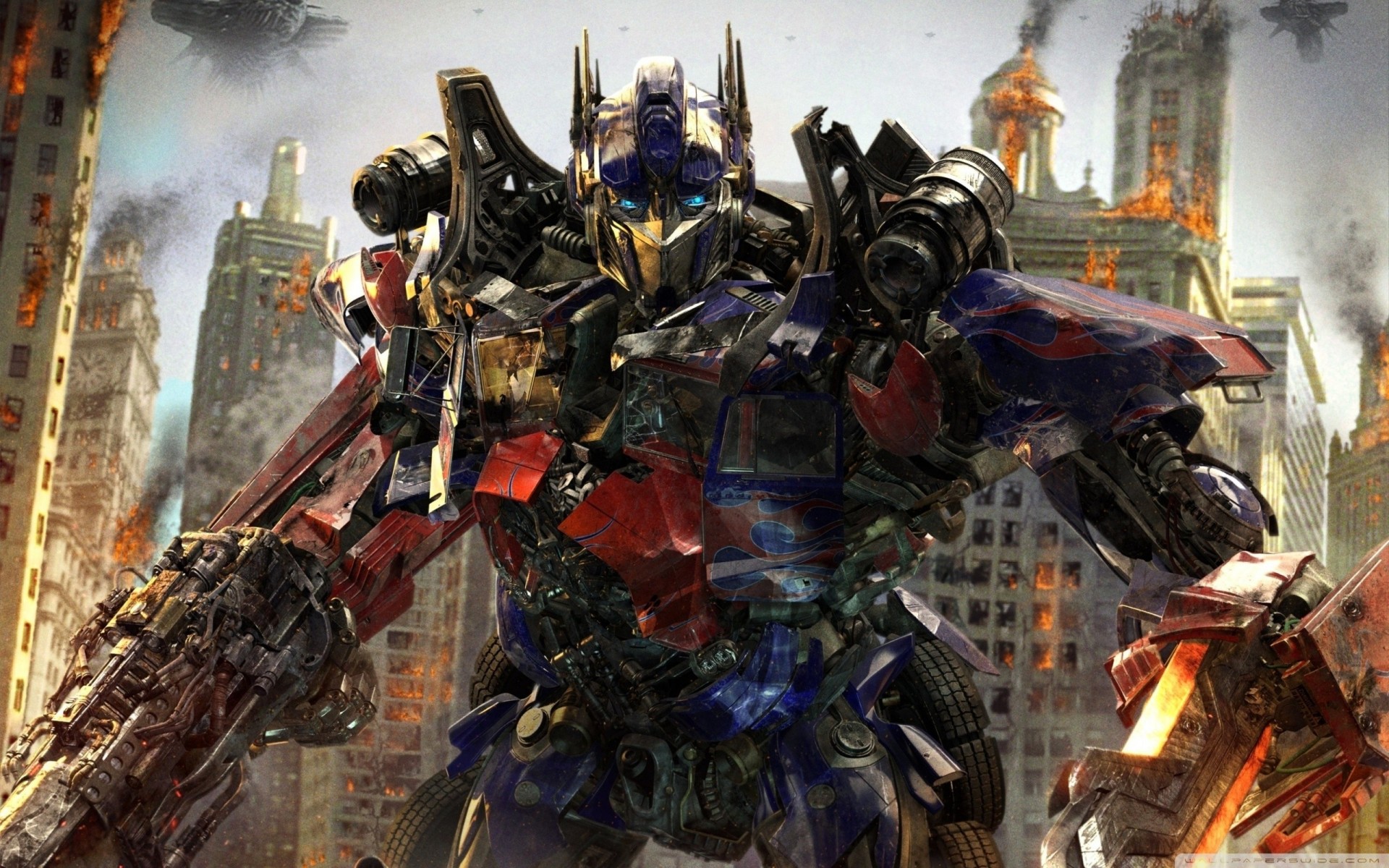 The battle of robotoa. Transformers on the background of the wasteland and drones