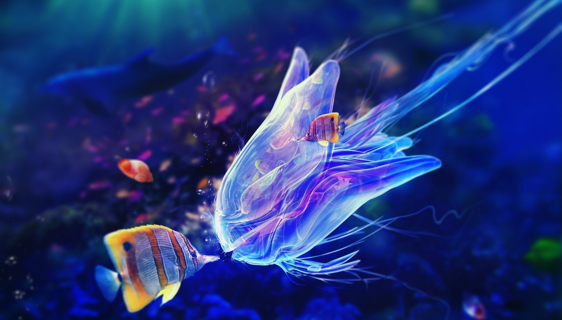 At the bottom of the sea jellyfish, corals, vast underwater world