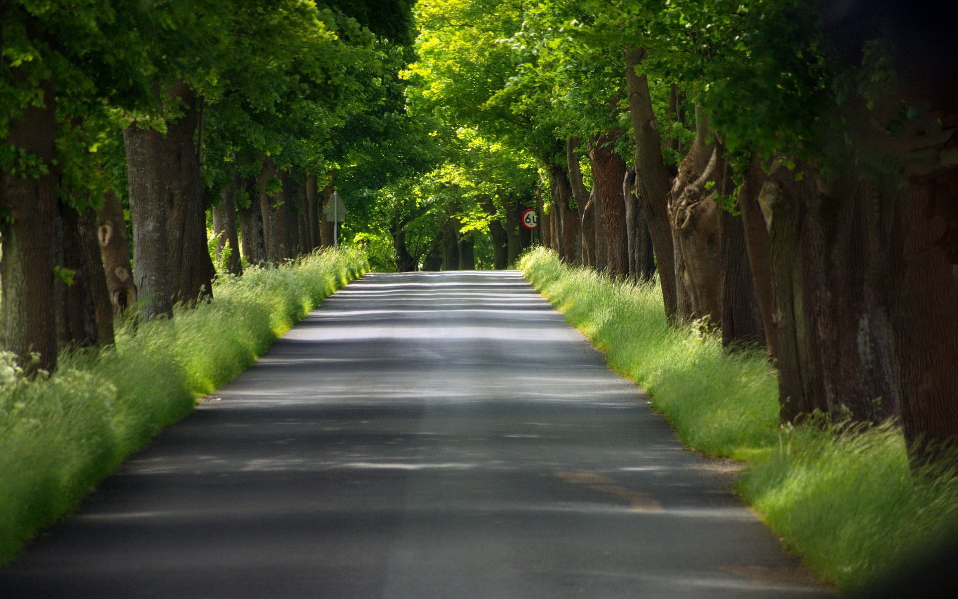 A mountainous area with small wooden houses greenery and a road on a sunny summer day