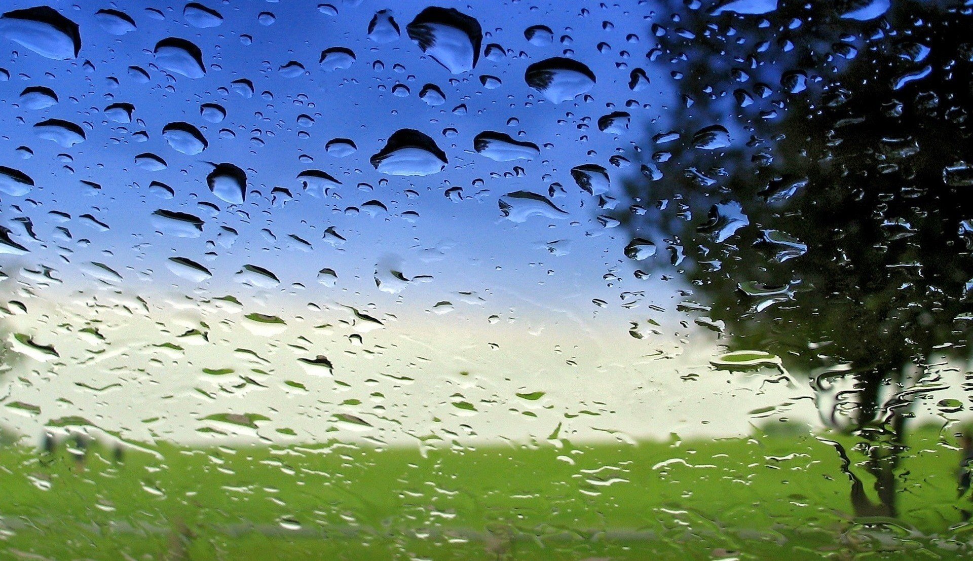 Water drops after rain on the glass