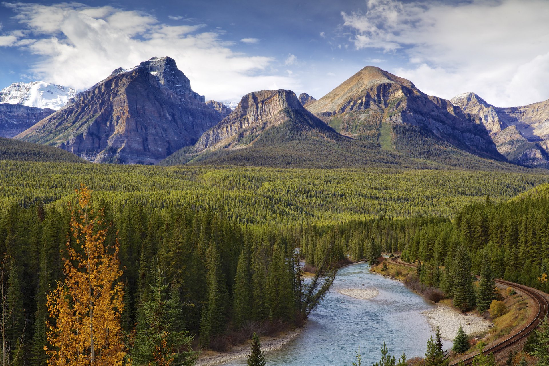 Canadian meadows on the background of snow-capped mountains