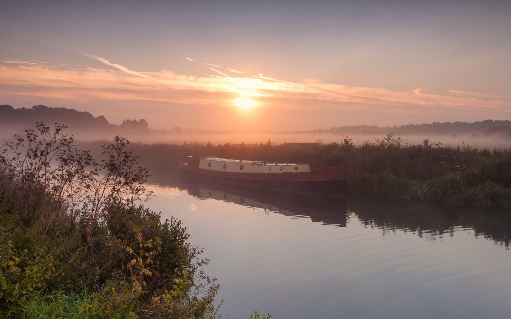 Sunset on the shore. longboat at sunset