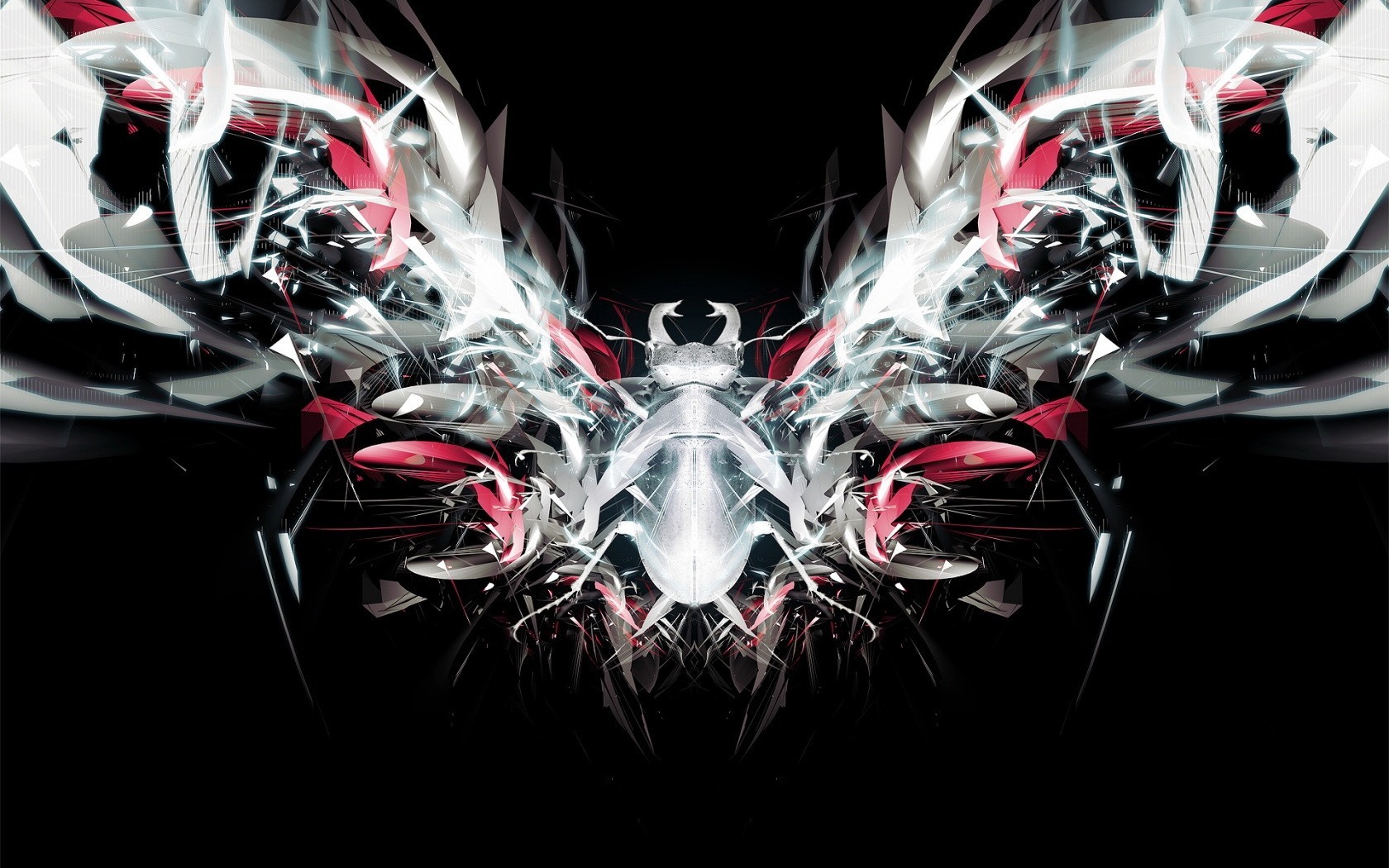 White beetle and abstract shapes around