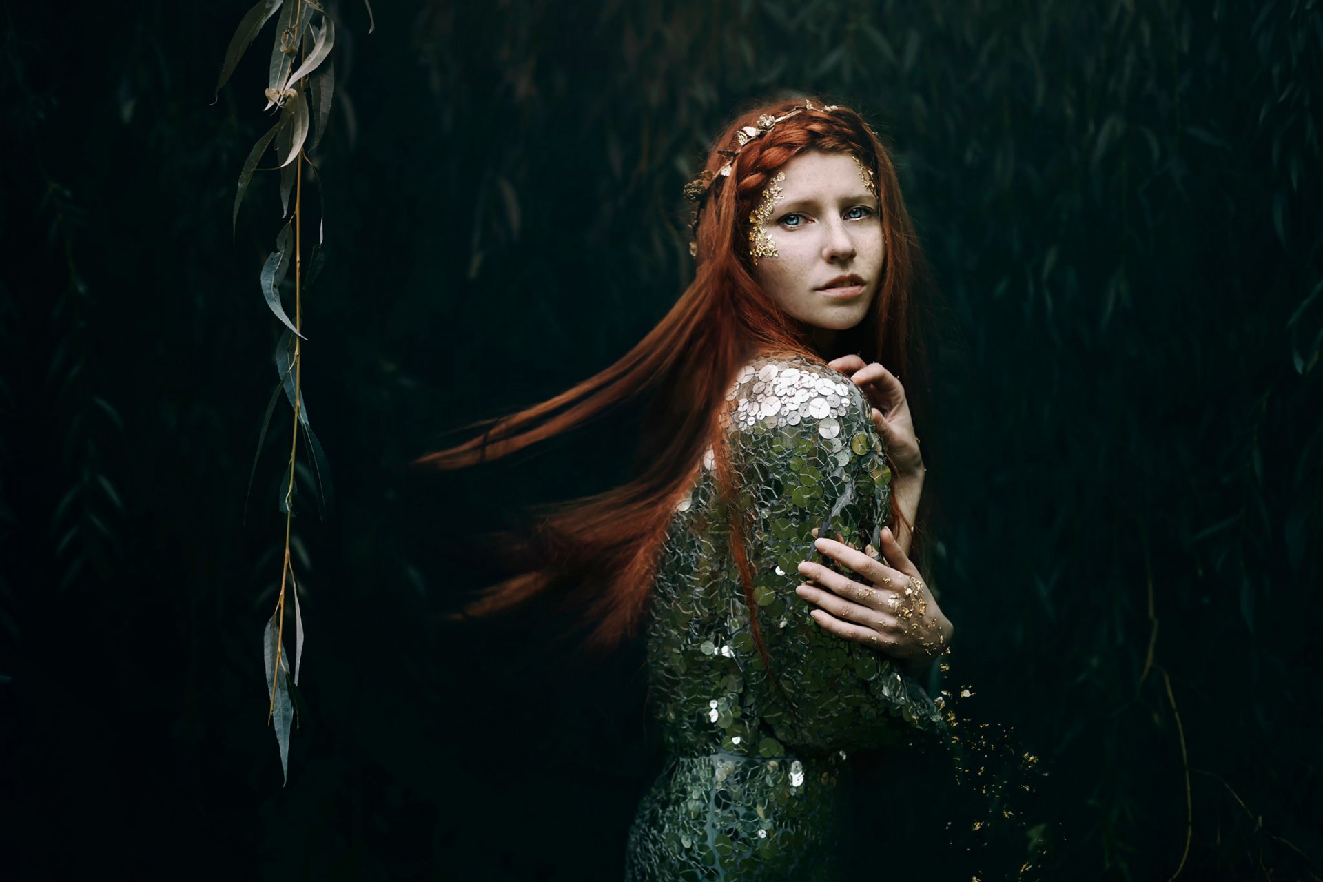 Desktop wallpaper with a red-haired girl