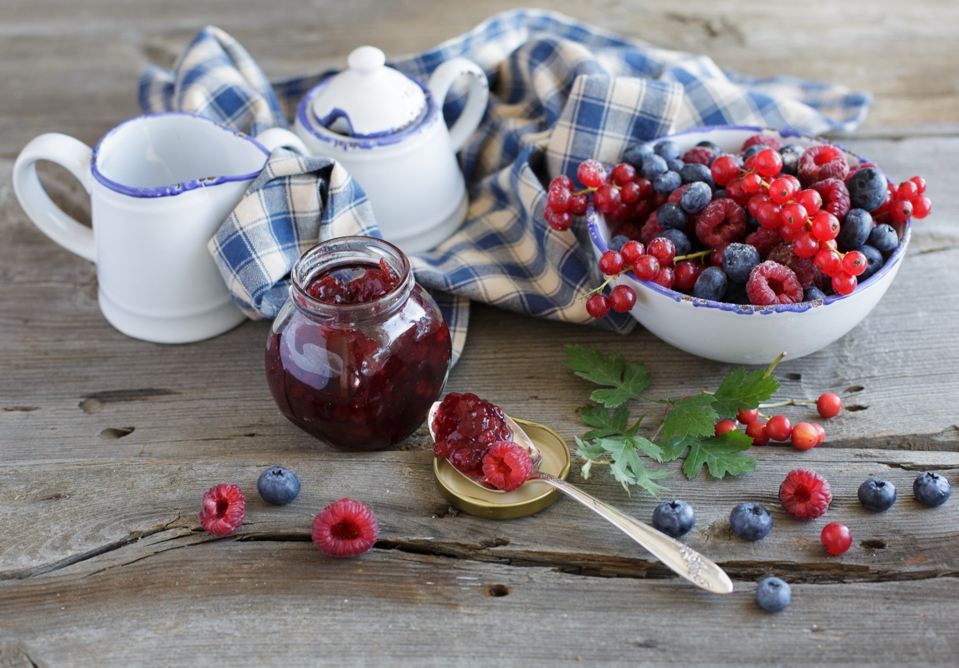 Still lifes with berries. Lots of berries. Bouquet of poppies