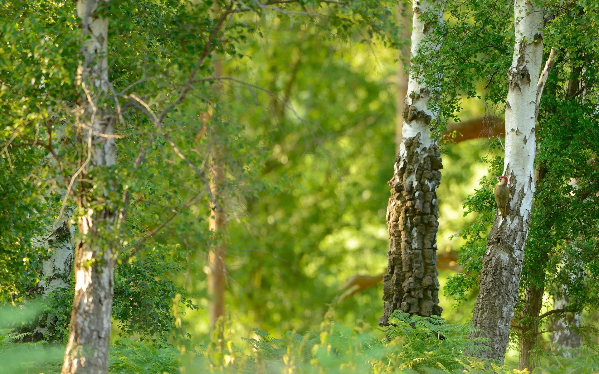 Birches in the summer green forest
