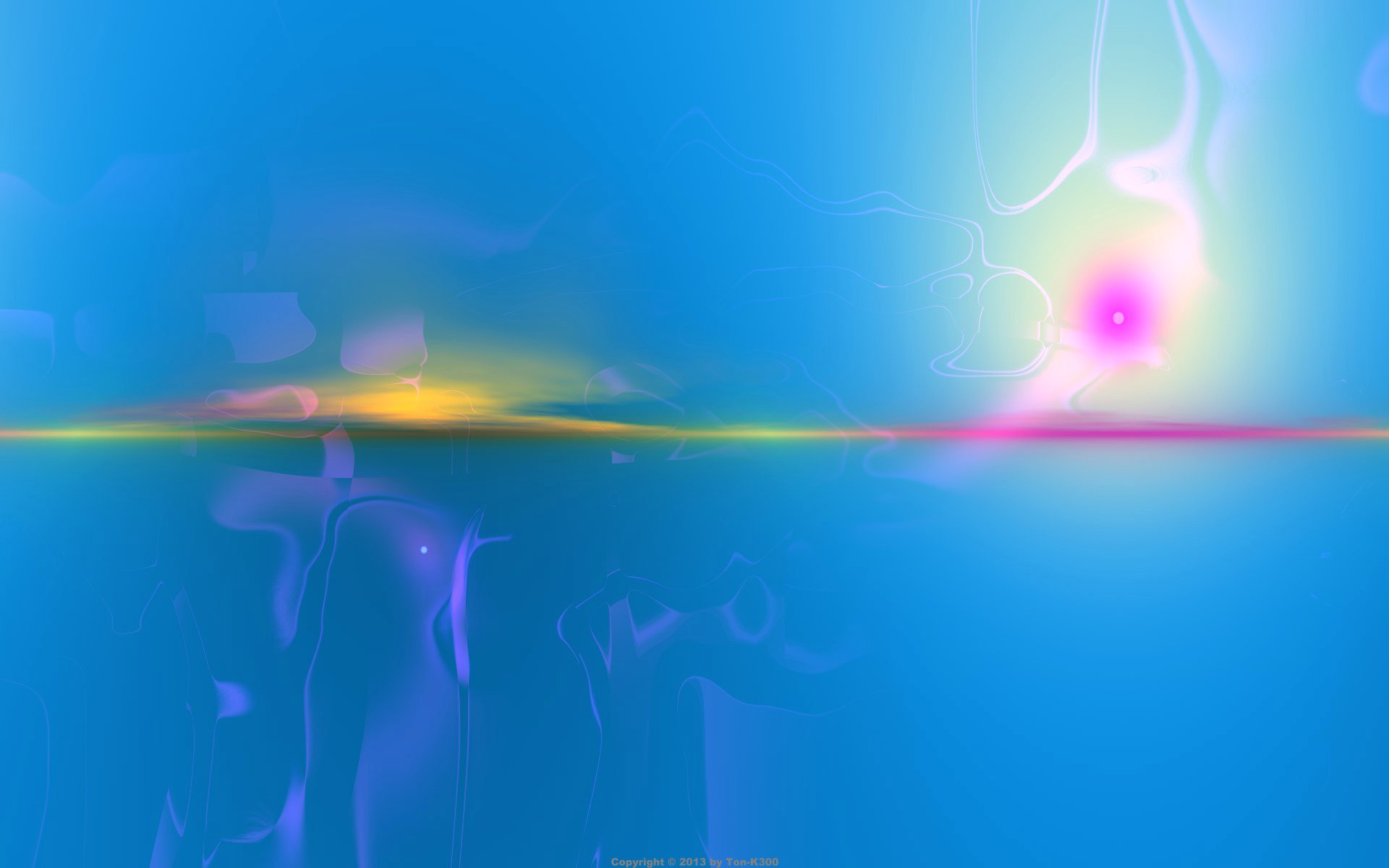 A gas yellow-pink stripe and a white-pink cloud on a blue background with streaks