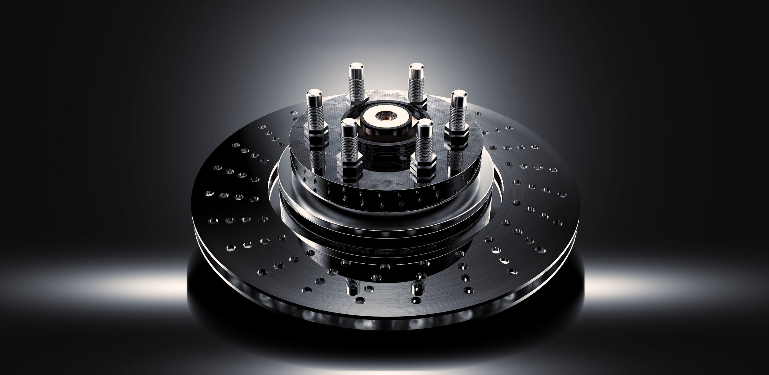 Brand new brake disc on a black background, under a soft light