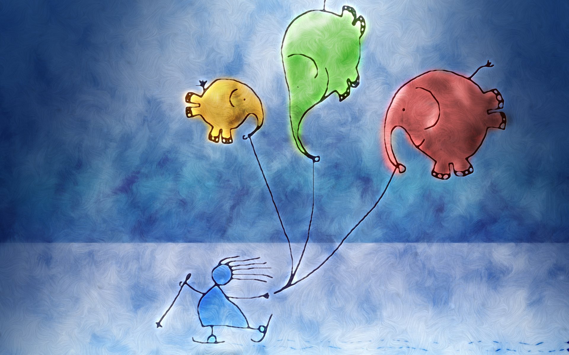 Hand-drawn creative girl on skis with water elephants winter nonsense