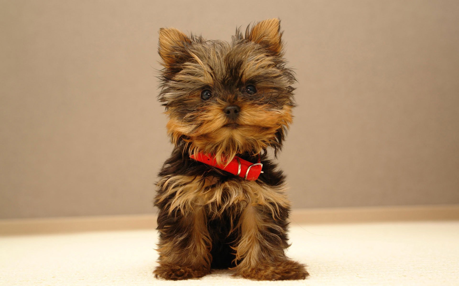 A puppy with a red collar