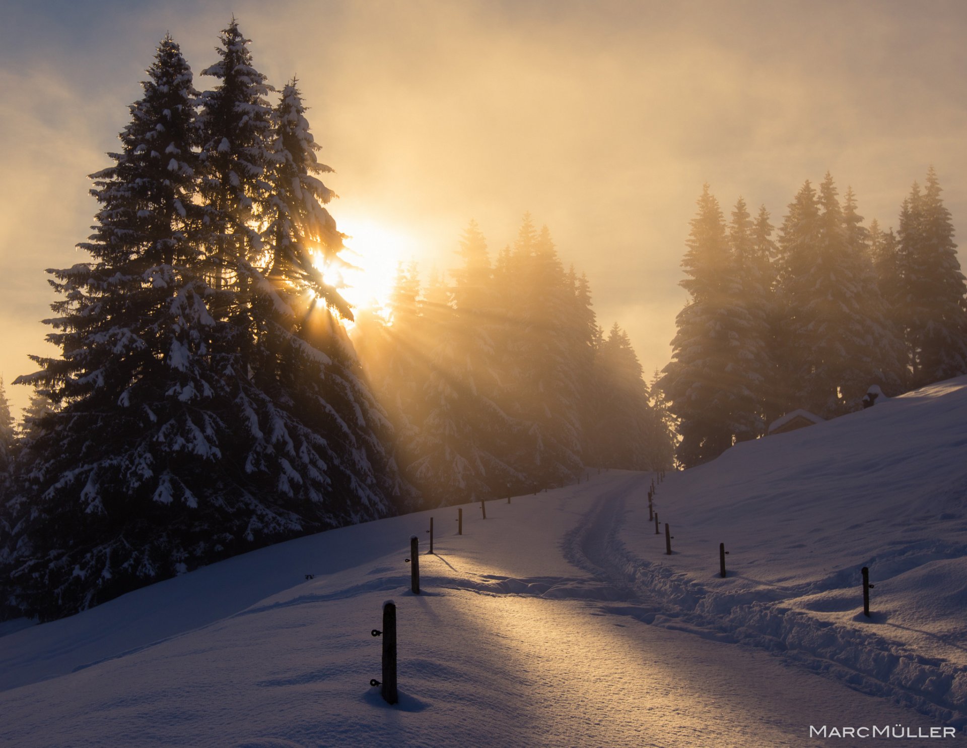 Winter trail to the coniferous forest