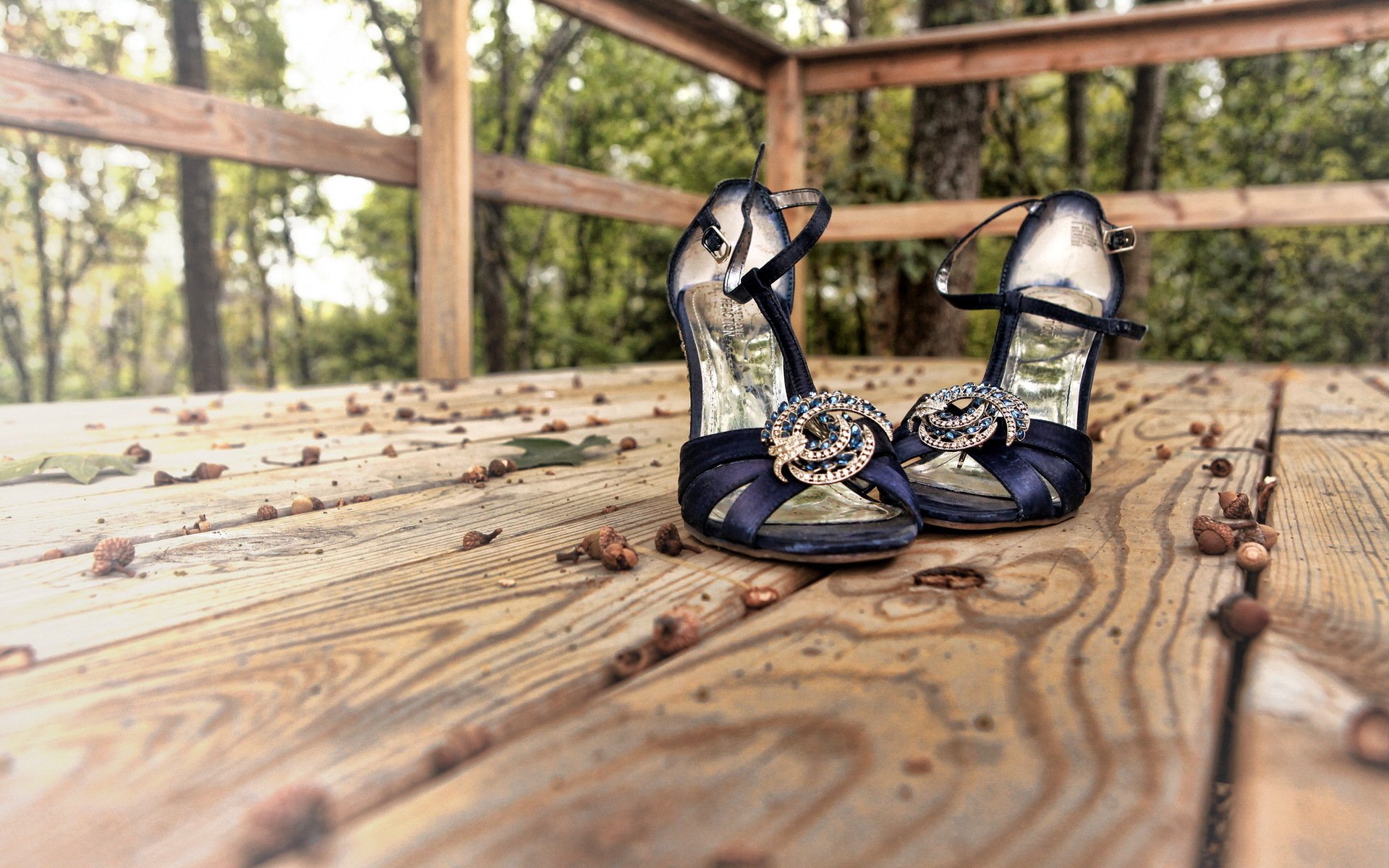 Women's evening sandals on a country terrace