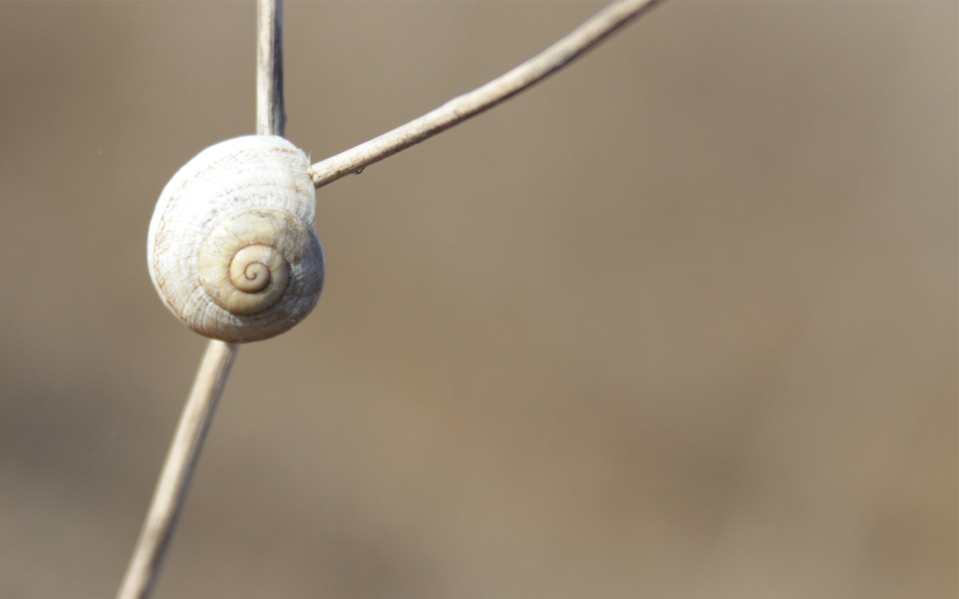 A small snail crawls along the stem