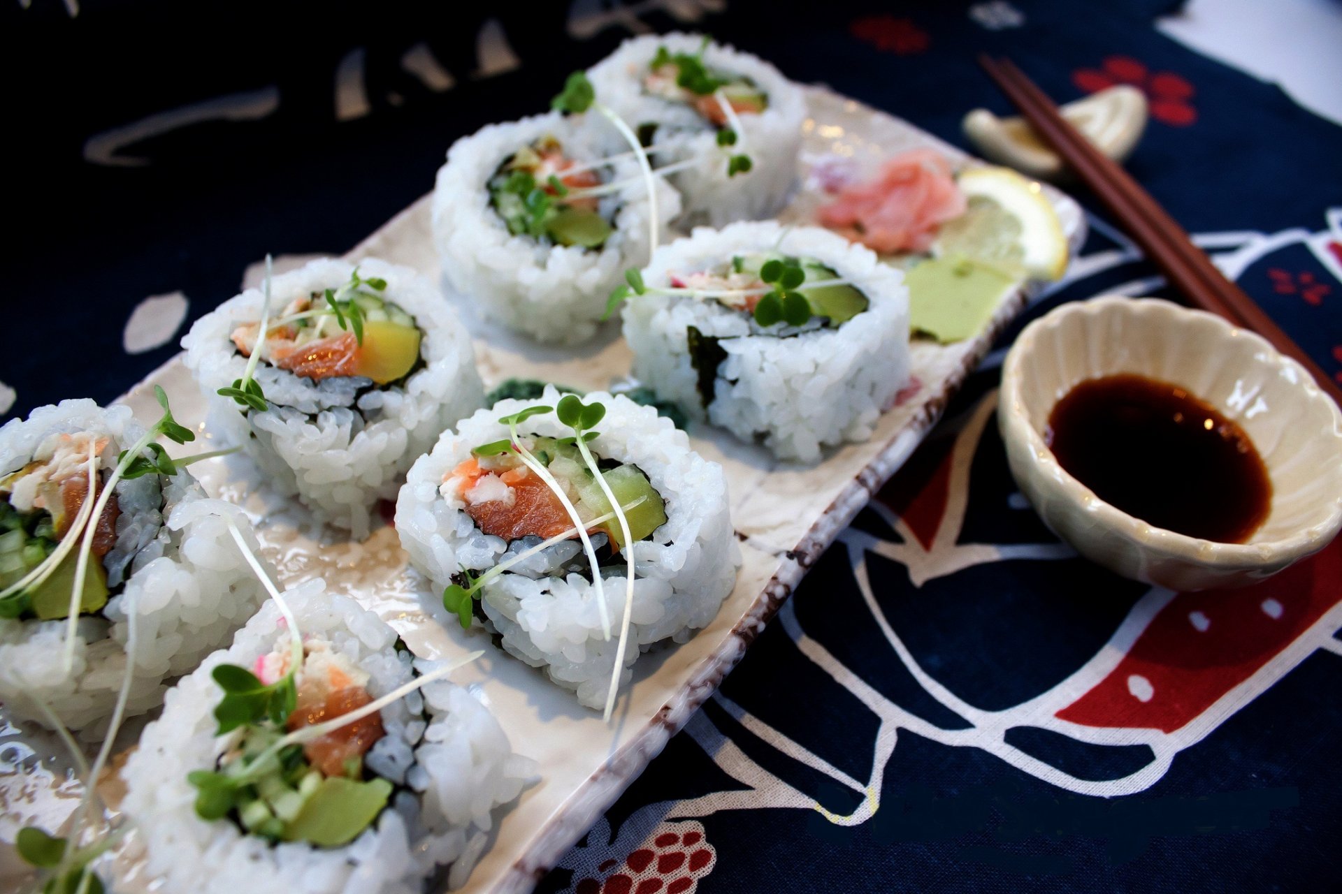 Japanese sushi with ginger served