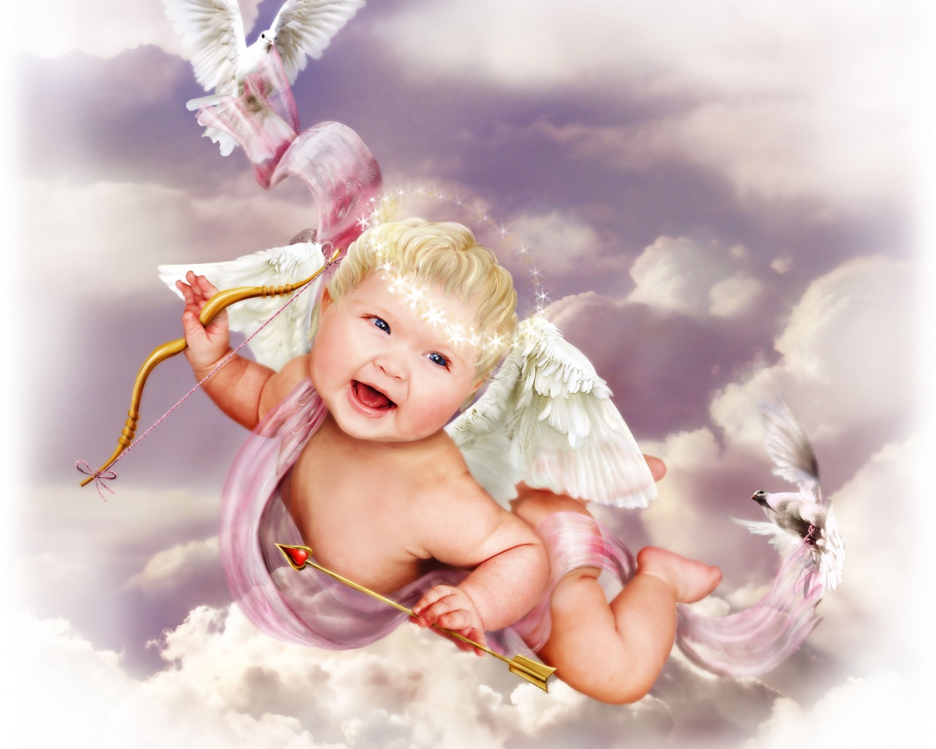A blond cupid with a bow and arrow
