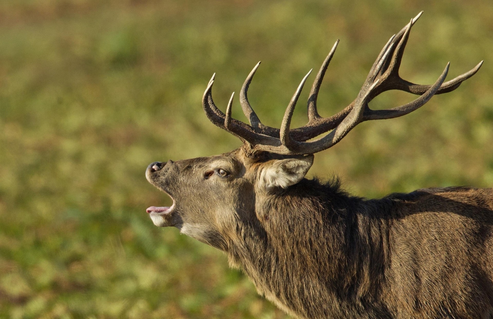 The cat lies and winks with one eye. The cat opened his mouth slightly and a fang can be seen