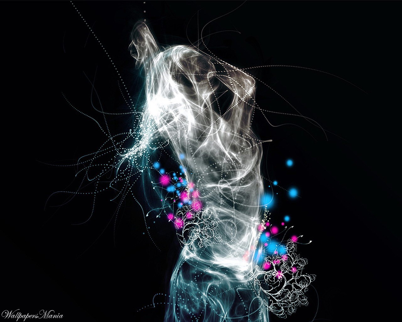 A GIRL IN GRAY AND WITH LOOSE HAIR DANCING