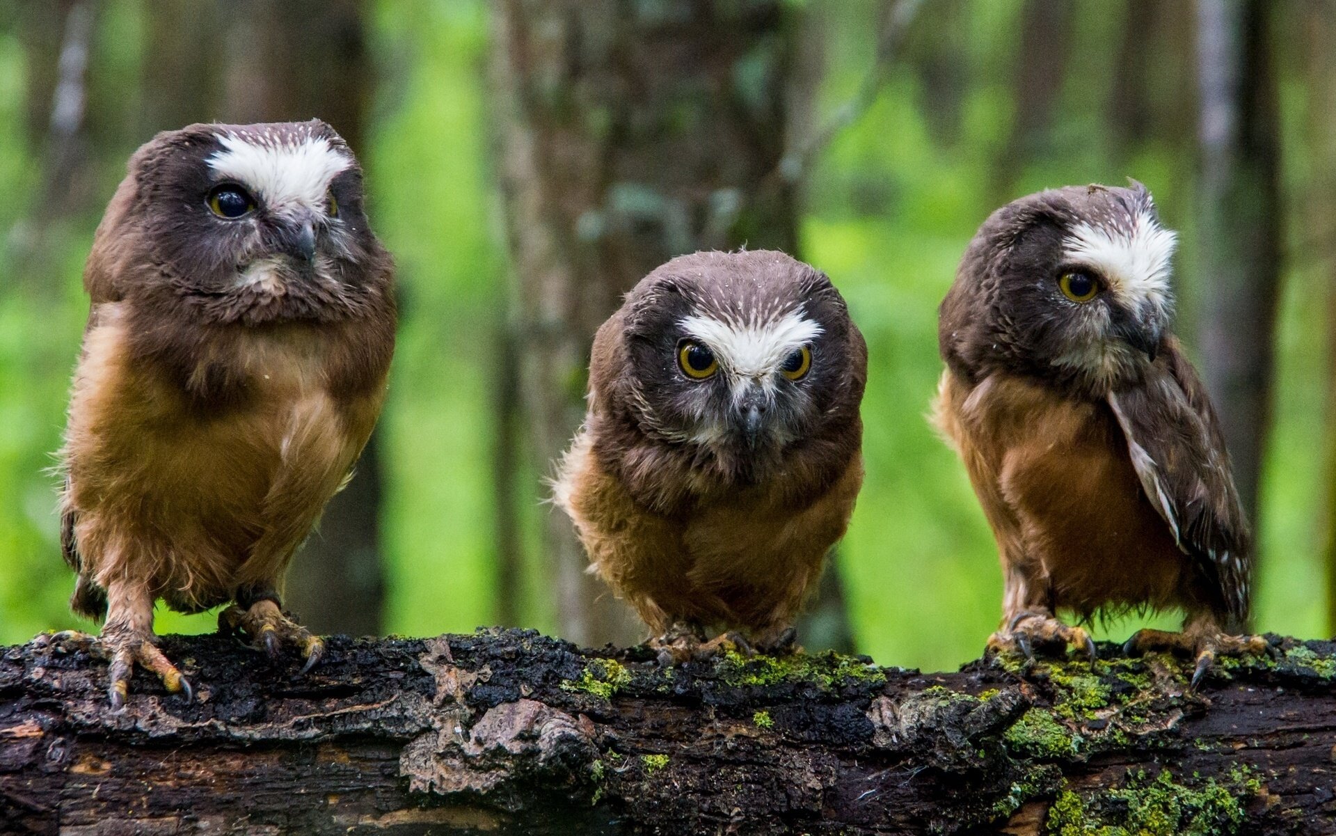 The big-eyed owl sat down on the moss