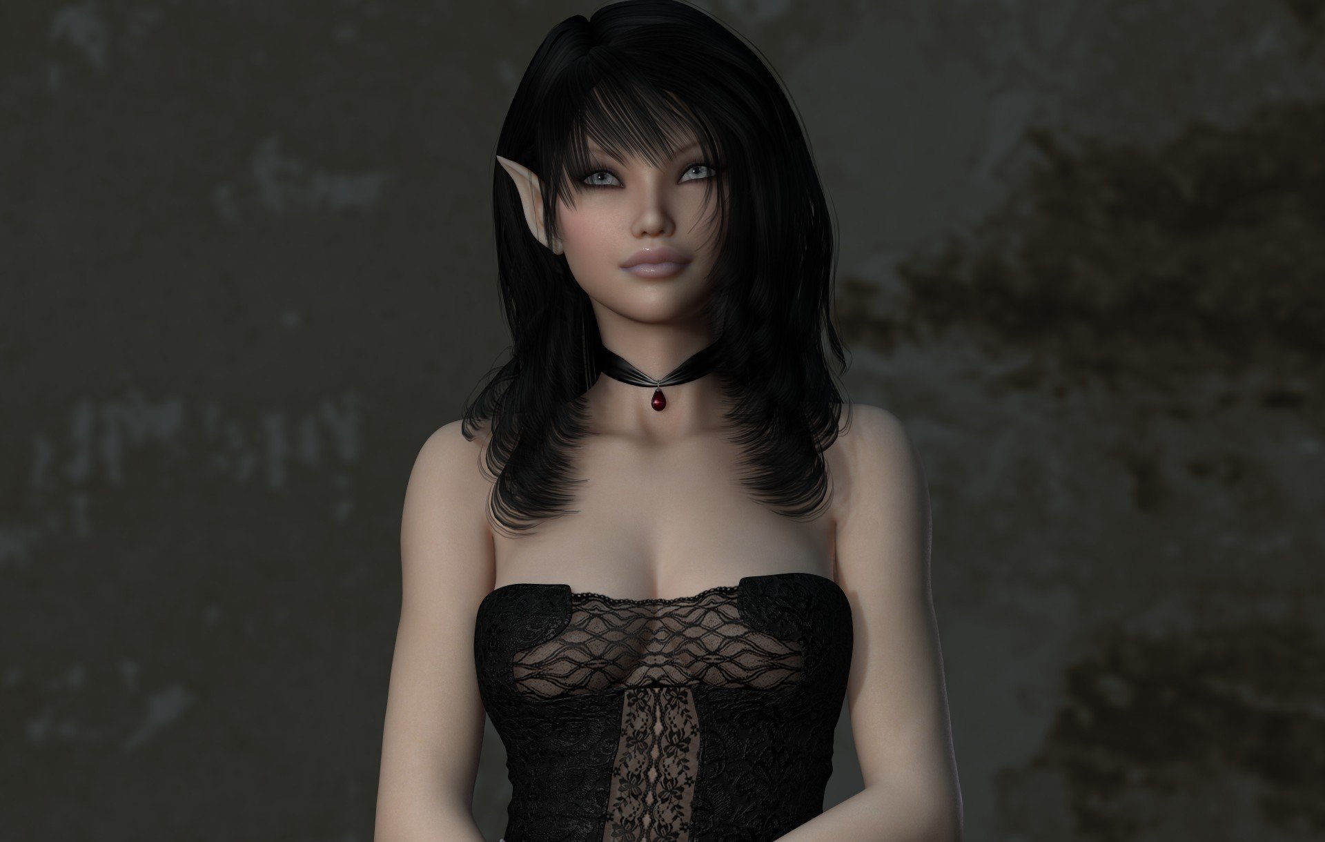 Elf girl with a pendant on a black background