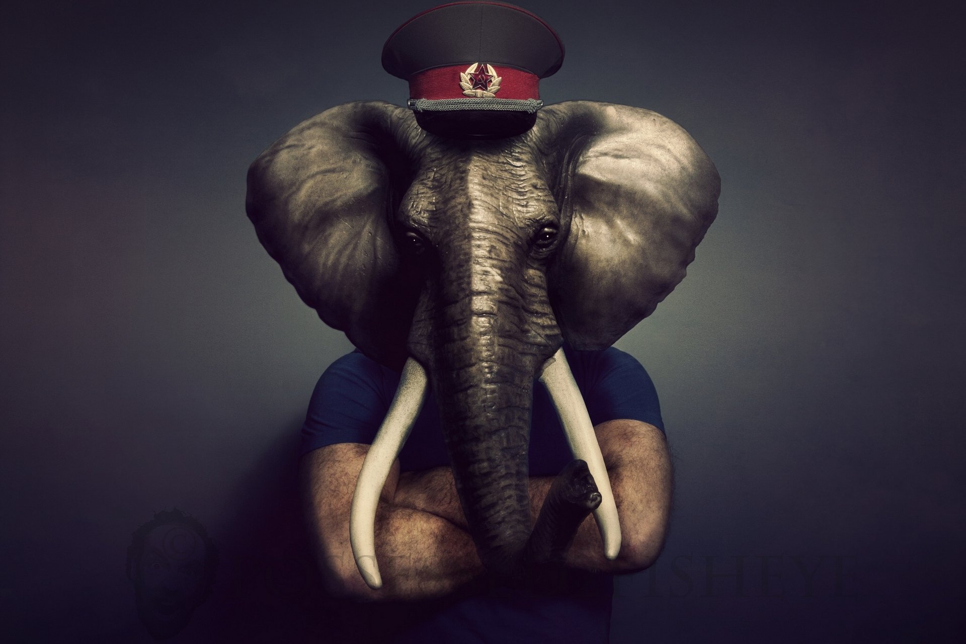Zagalochny elephant with a guitar in the dark