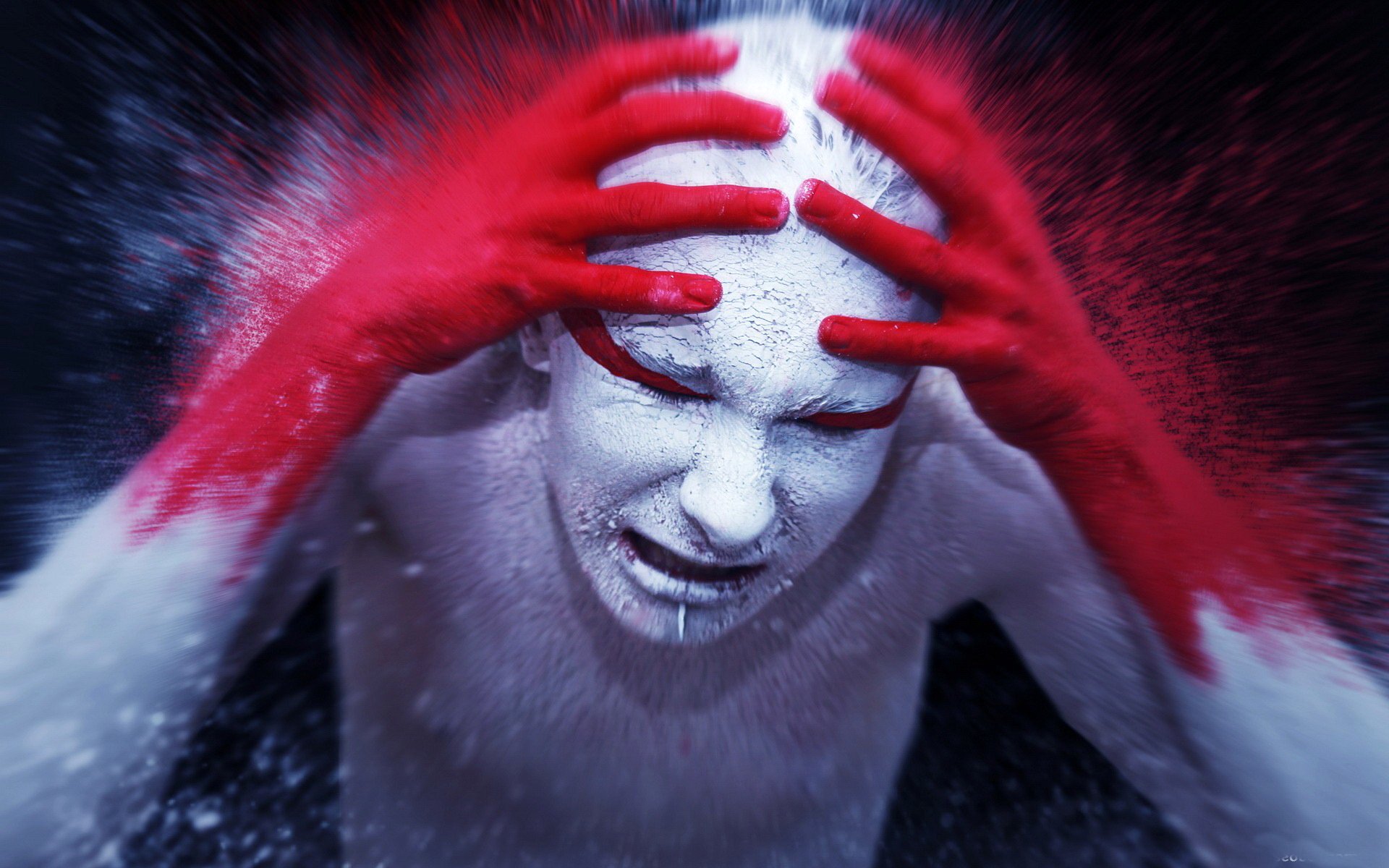 Desperate facial expressions on a blue texture