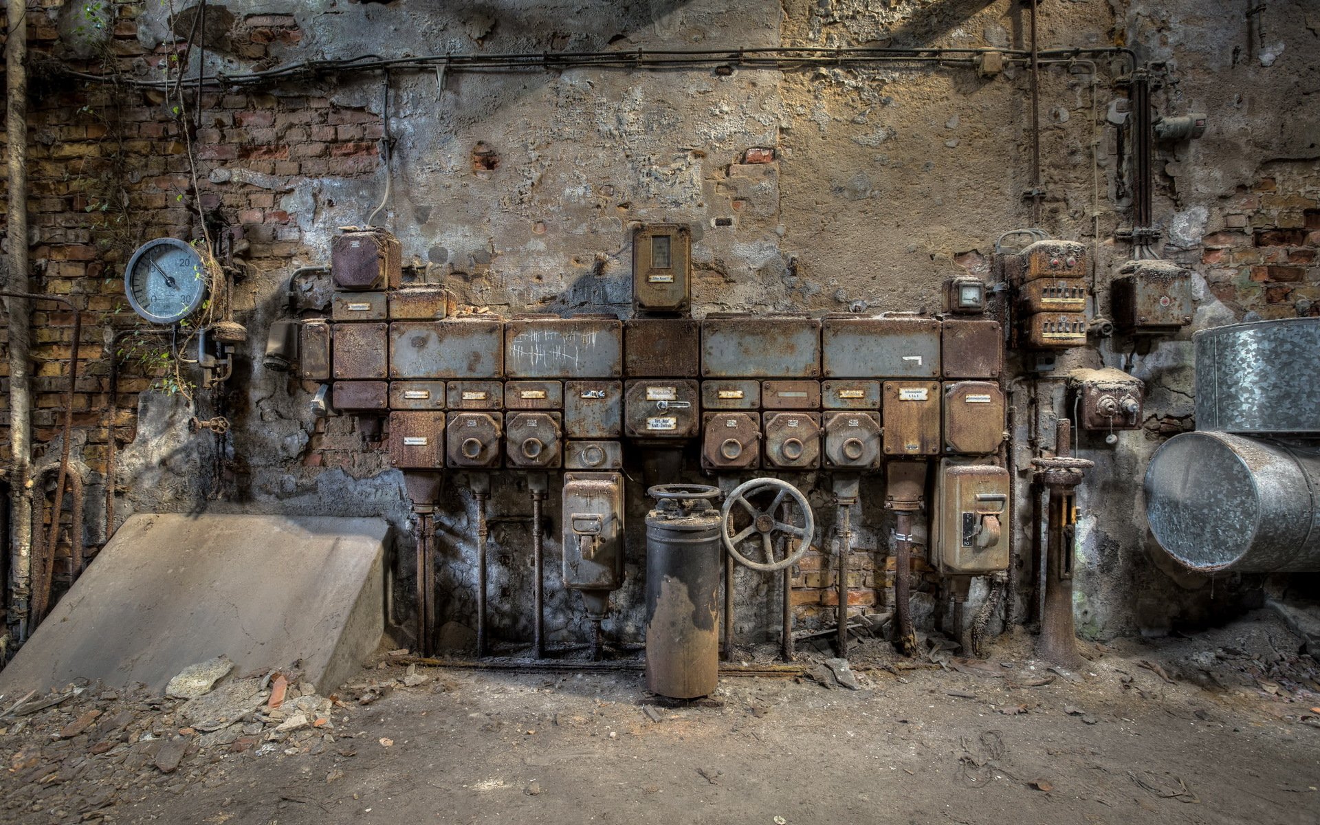 Gray creepy factory with pipes