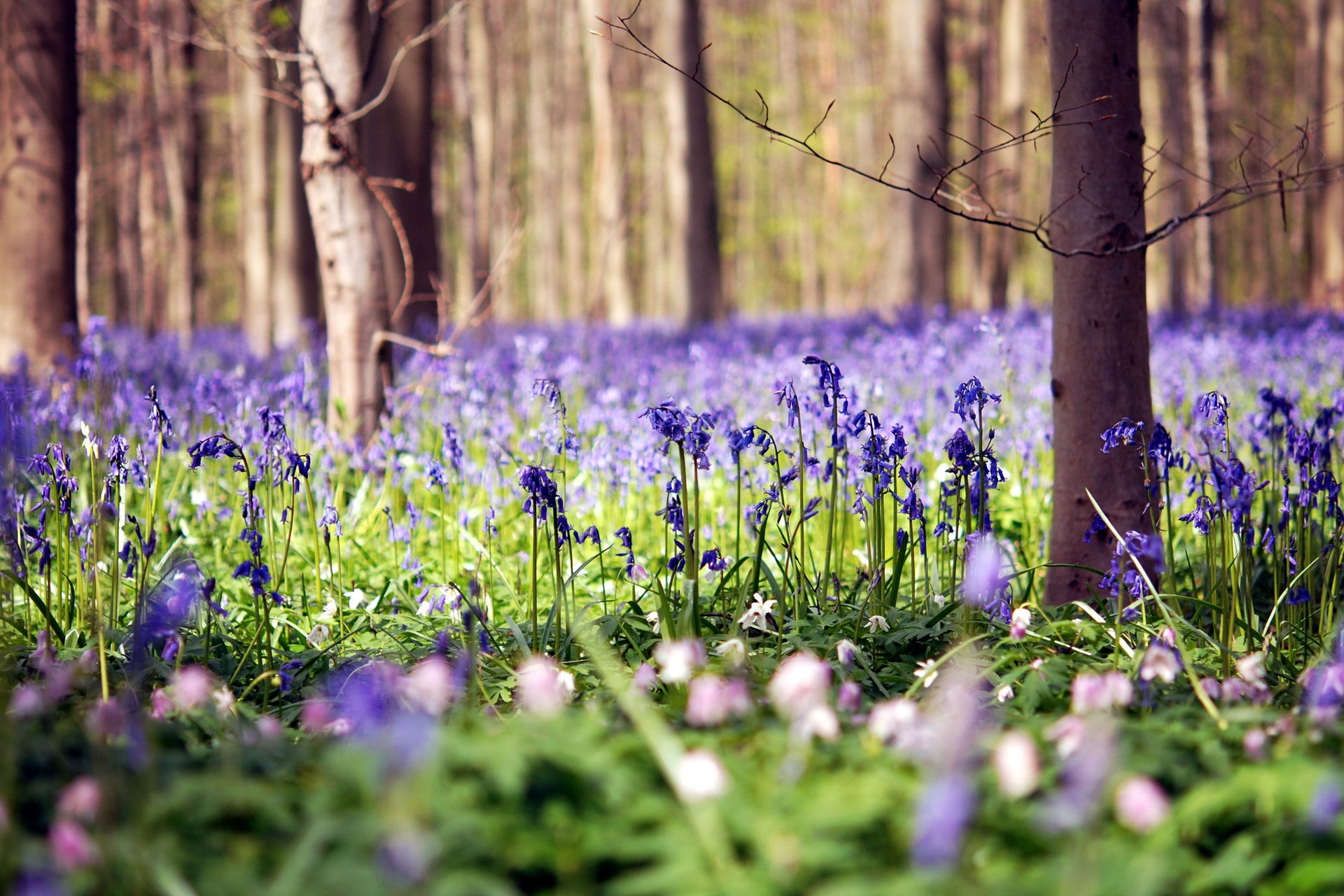 A bouquet of flowers on the windowsill against the background of a window with greenery