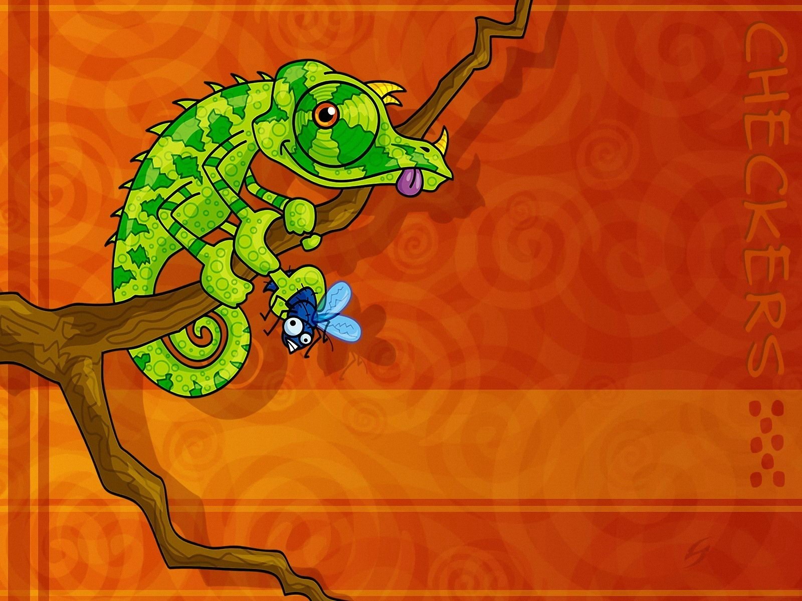 Cartoon chameleon caught a fly