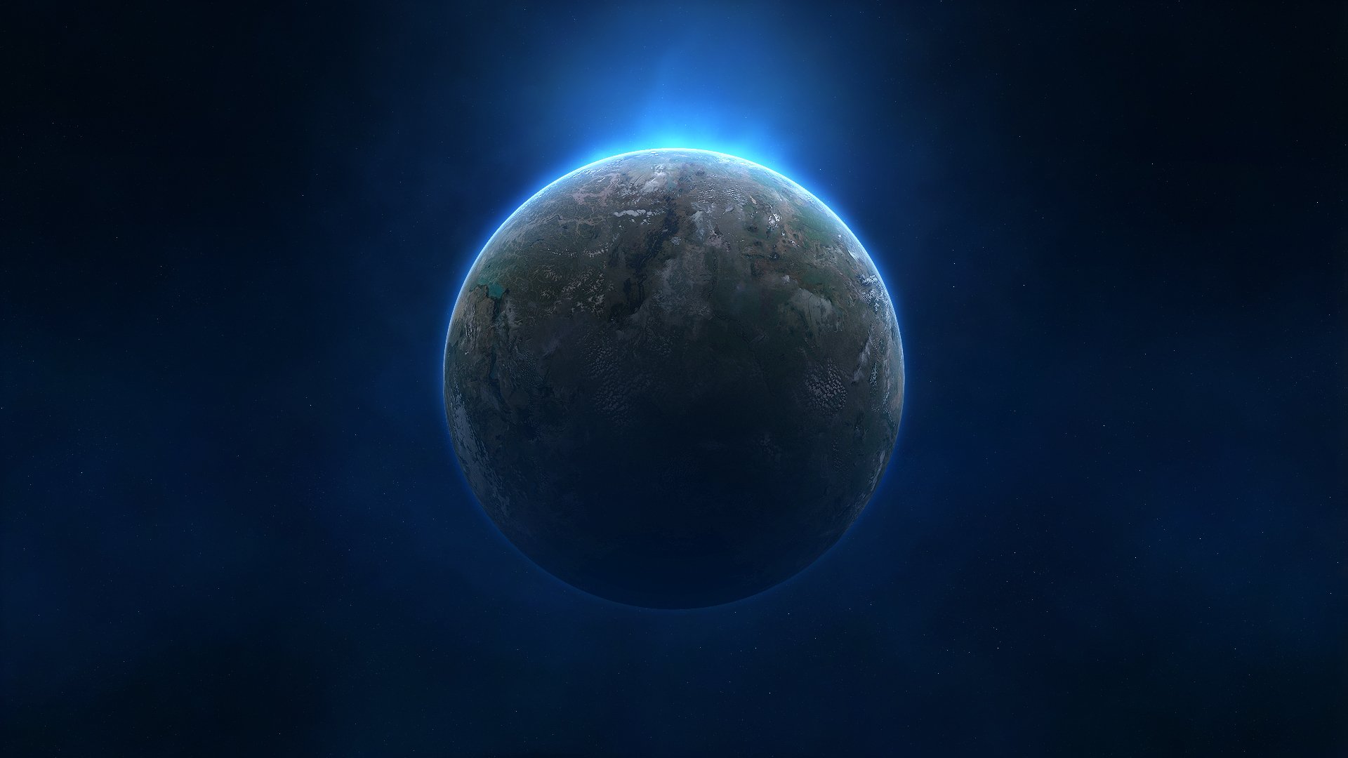 Glowing Blue Planet on Dark Background