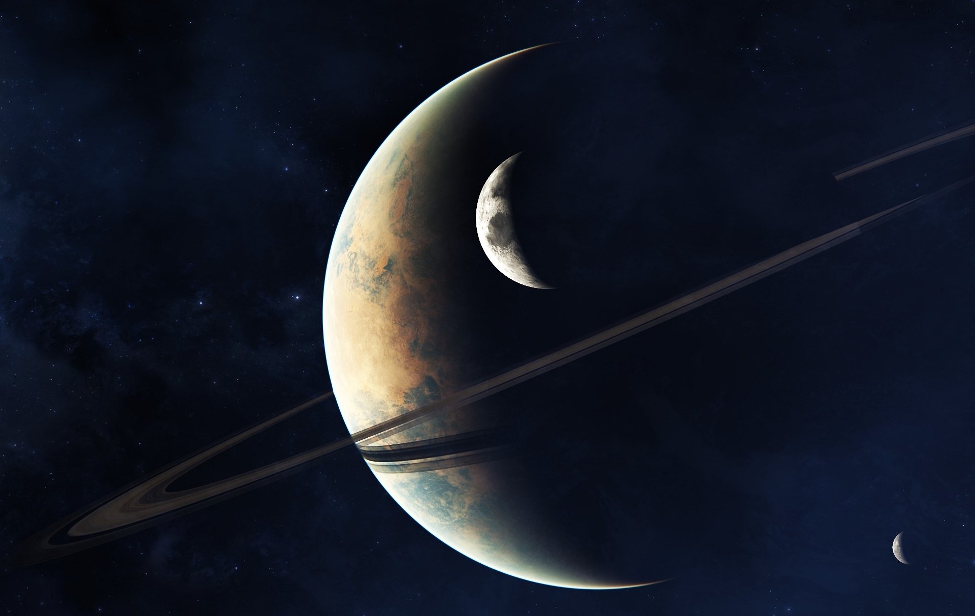 The planet is a gas giant, looks like a rainbow shining bright In space