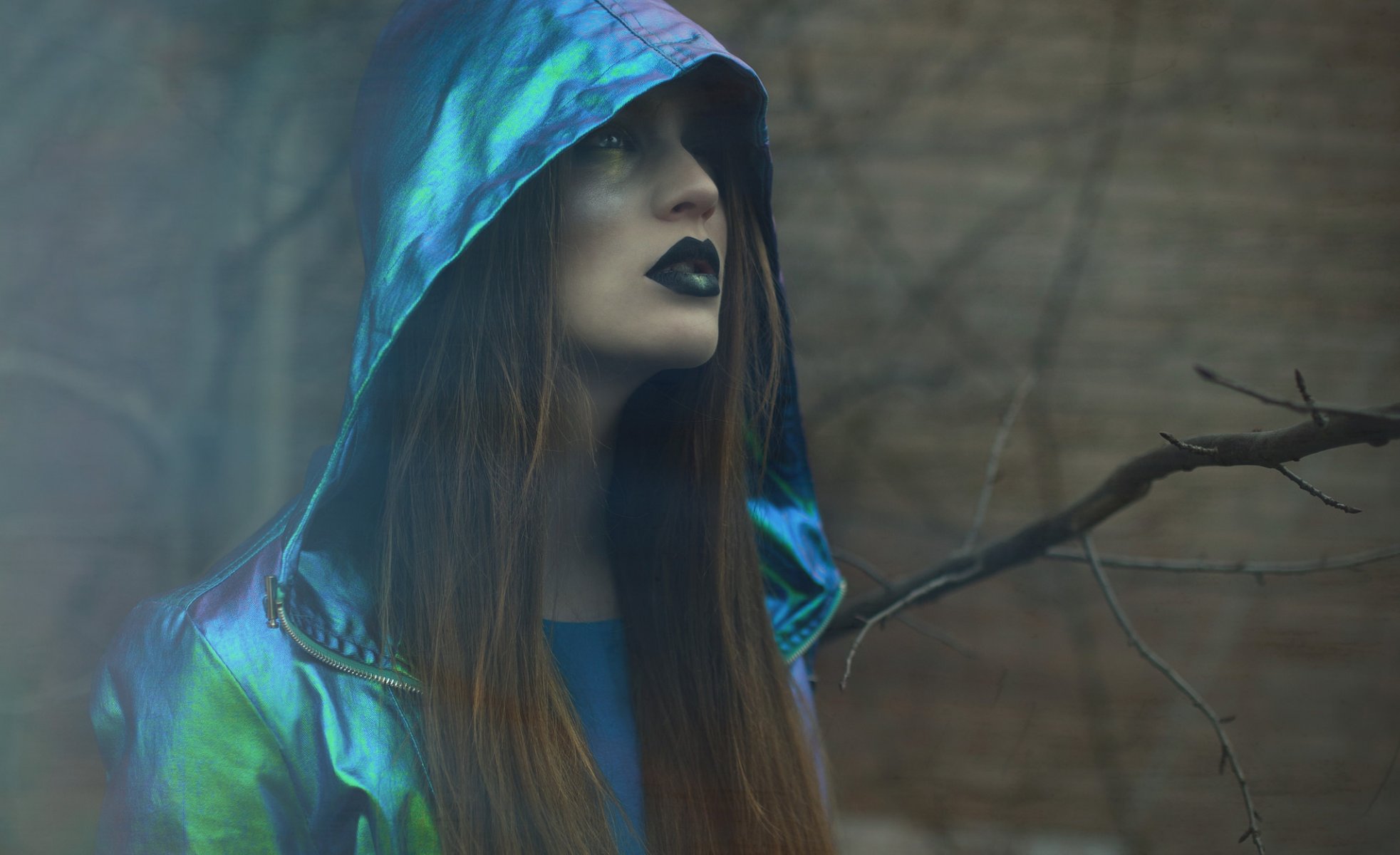 The evanescence group is a girl in a gothic black and scarlet dress on a gray and black background