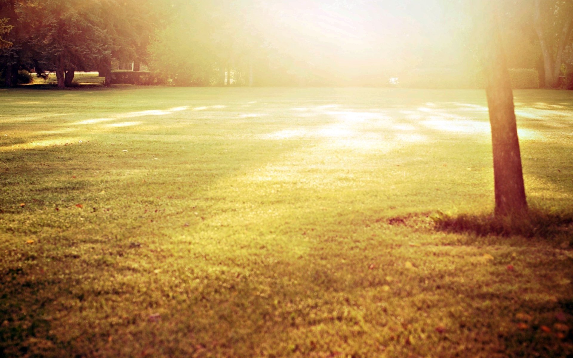 Nature. Trees, grass in the meadow