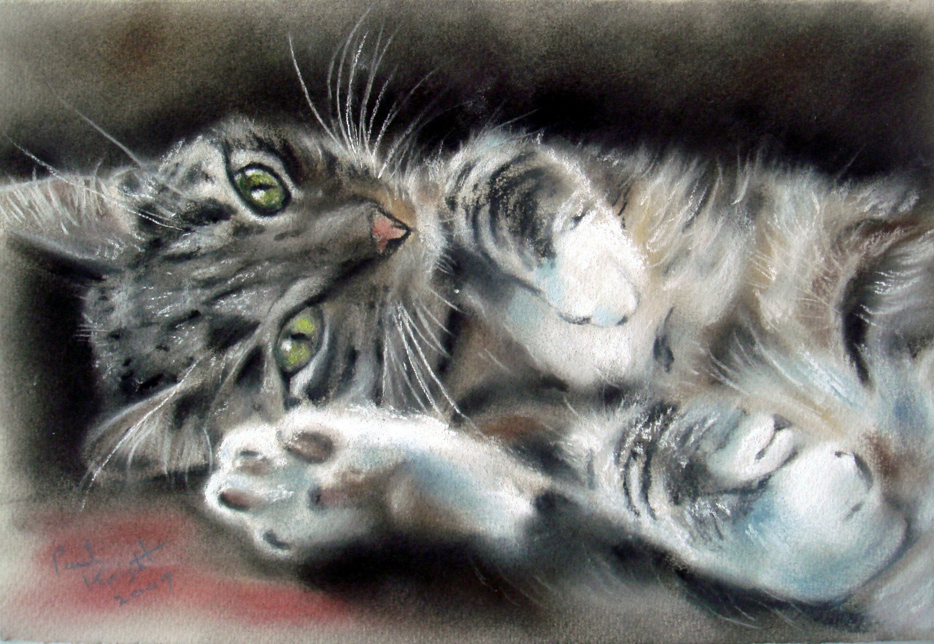 Painting of a cat with green eyes