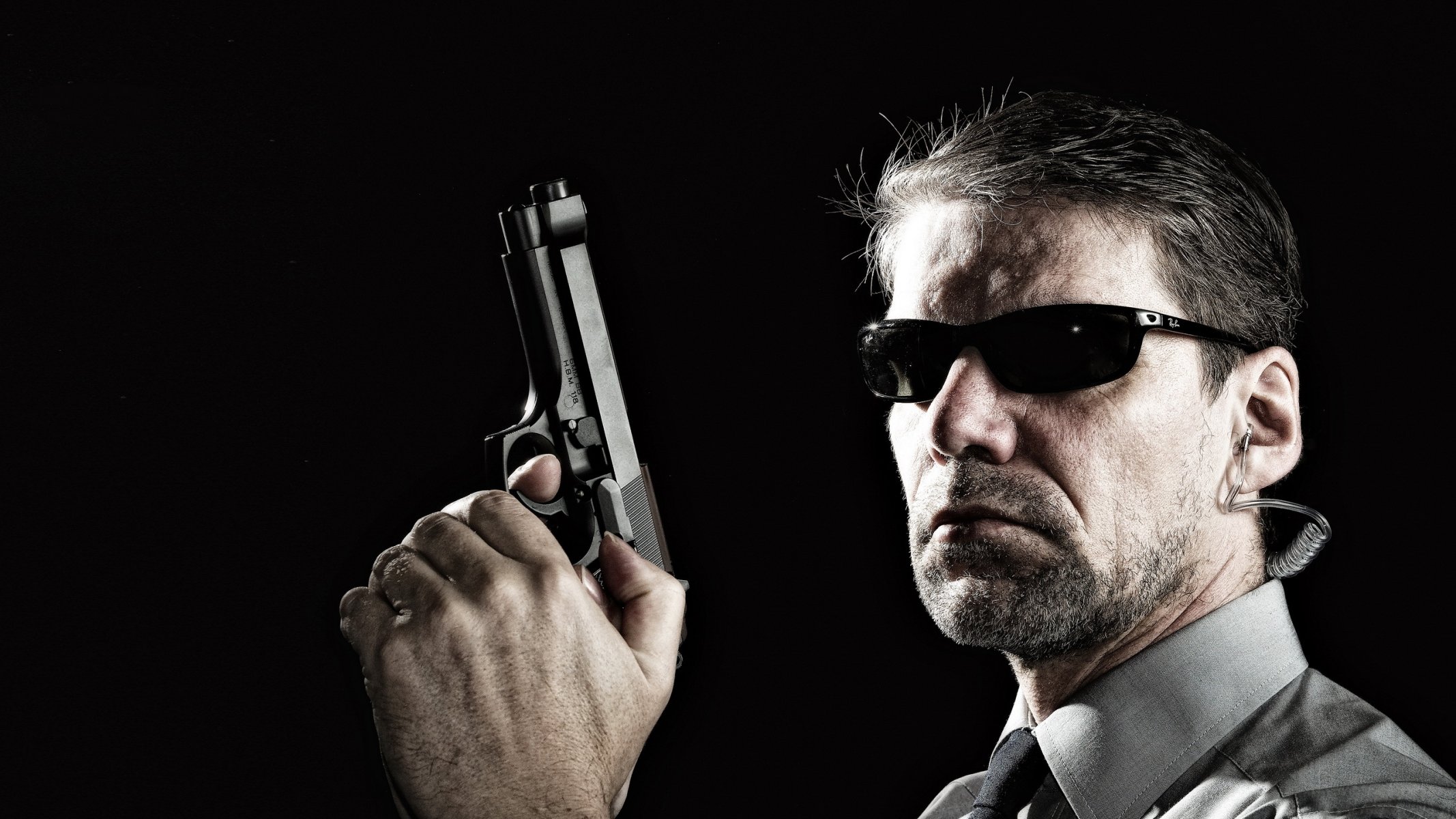 Ryan Reynolds and Jeff Bridges with guns in their hands