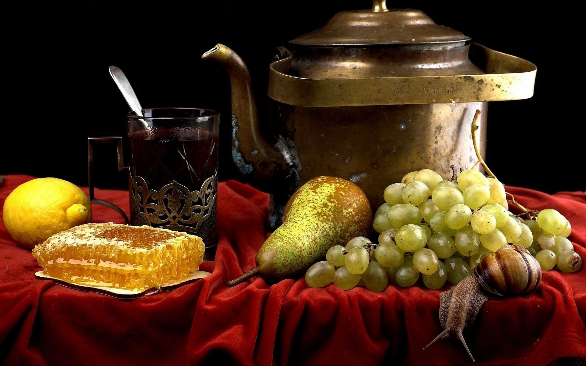 Tea party with fruit, lemon and honey
