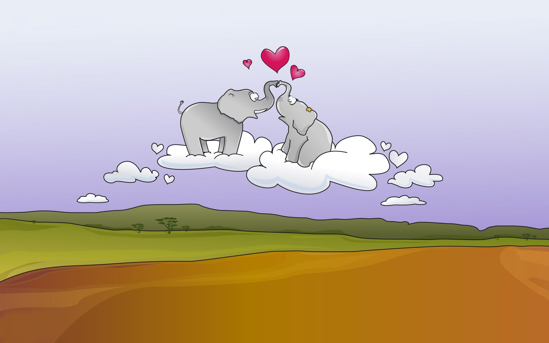 Baby elephants in love in fluffy clouds