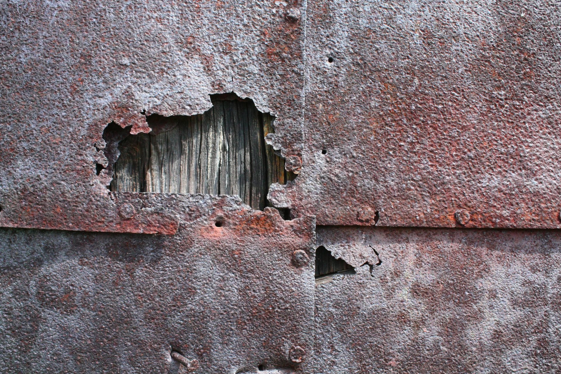 A hole in the rusty iron